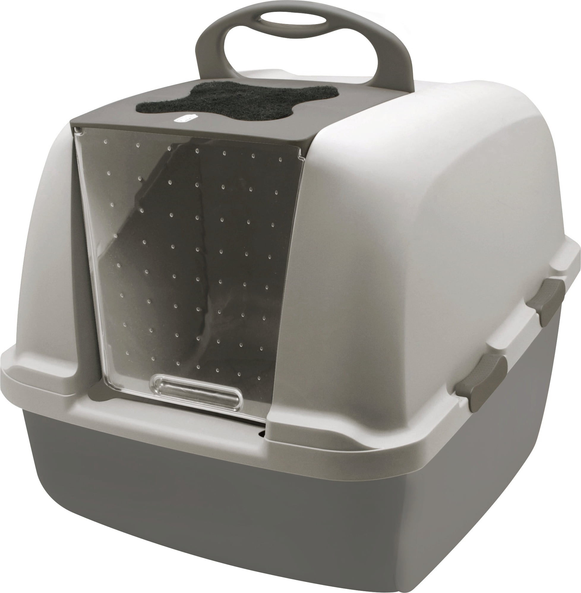 Catit Katzentoiletten mit Dach sind ideal für große Tiere oder Haushalte mit mehreren Katzen: Ein extragroßer Eingang erleichtert den Stubentigern den Zugang und Besitzern die Reinigung. Natürlich ist die Türe auch pfotensicher. Ein integrierter Kohlefilter reduziert Gerüche, das Gehäuse besteht zu 100 Prozent aus BPA-freien Materialien, die sich mühelos reinigen lassen und keine Flecken entwickeln. Ein Tragegriff erleichtert das Handling.