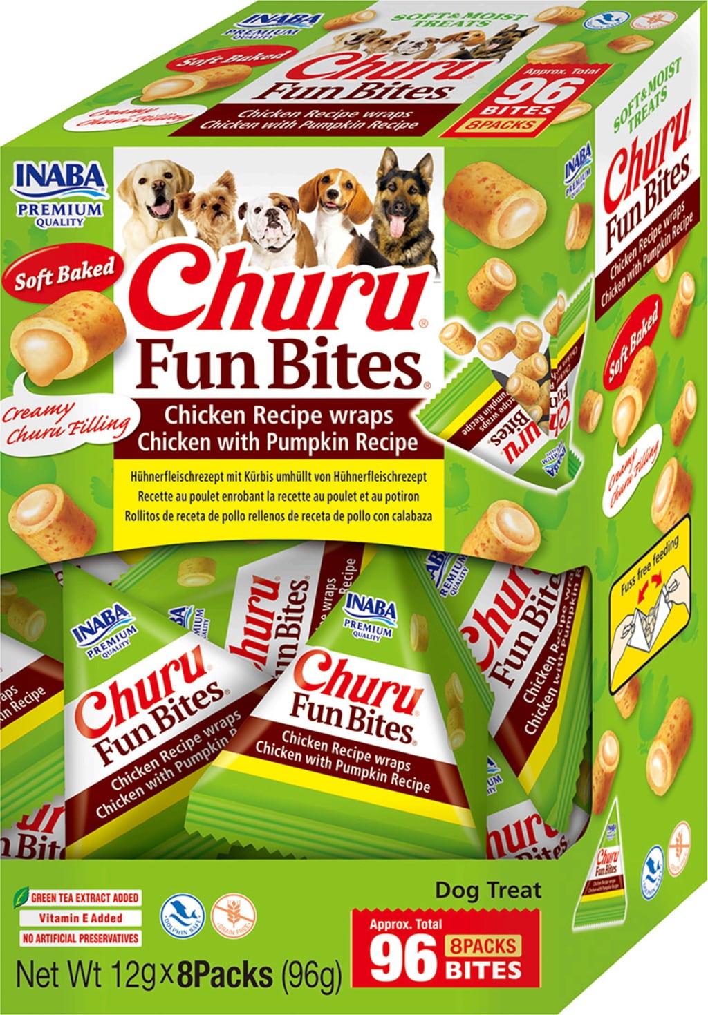 Churu Dog Fun Bites 8 x 12g, Hühnchen Wraps mit Kürbis (96 g)