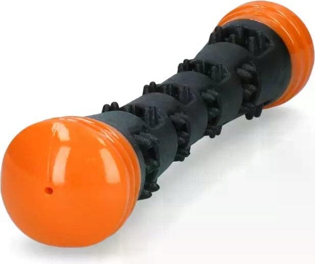 Dieser Wurfstock in leuchtendem Orange mit lustigem Quietscher bringt nicht nur jede Menge Spielspaß, er massiert auch das Zahnfleisch deines Vierbeiners und unterstützt so die Zahnpflege.
