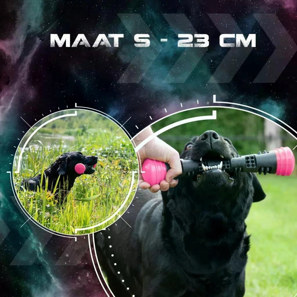 Dieser Wurfstock in leuchtendem Rosa mit lustigem Quietscher bringt nicht nur jede Menge Spielspaß, er massiert auch das Zahnfleisch deines Vierbeiners und unterstützt so die Zahnpflege.