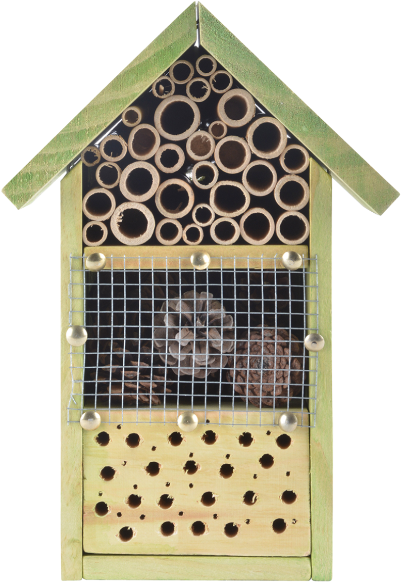 Durch die Eingriffe in die Natur sind die Lebensräume vieler Insektenarten mittlerweile stark eingeengt. Mit diesem Insektenhotel kannst du gleich mehreren nützlichen Insektenarten eine Nist- und Überwinterungsmöglichkeit zur Verfügung stellen. Ohrwürmer sind die natürlichen Feinde der Blattläuse, Wildbienen sind für die Bestäubung der Pflanzen zuständig - in diesem Hotel finden sie einen sicheren Unterschlupf.