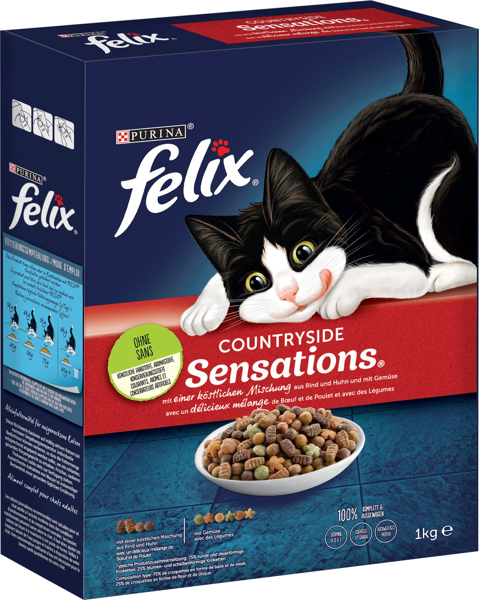 Countryside Sensations von Felix ist das perfekte Trockenfutter für kleine Katzengourmets. Die unwiderstehliche Mischung aus Huhn, Rind und Gemüse ist nicht nur ein Festmahl für die Sinne, sondern auch eine wahre Gaumenfreude für das pelzige Familienmitglied.