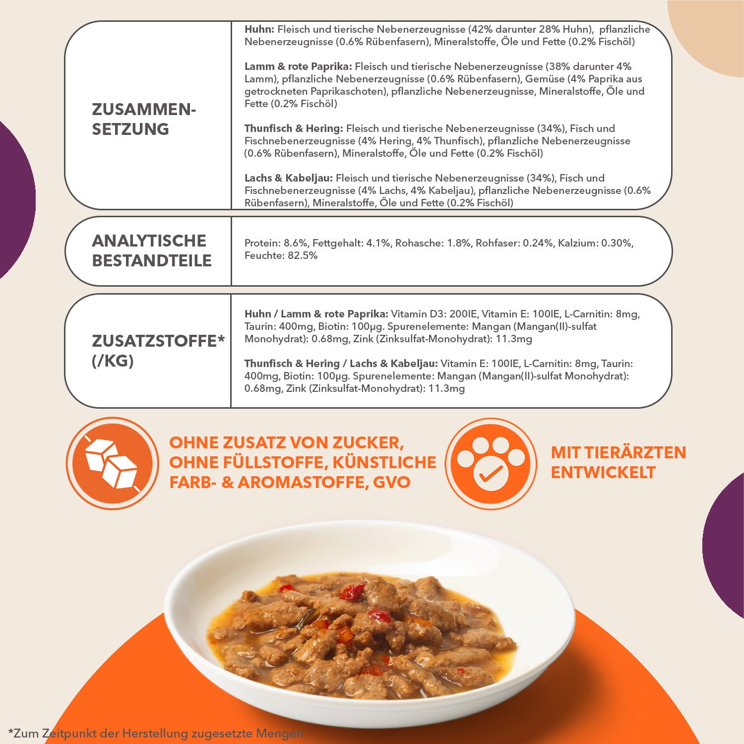 - Altersgerechte Rezeptur mit Taurin sowie zugesetzten Vitaminen und Mineralstoffen