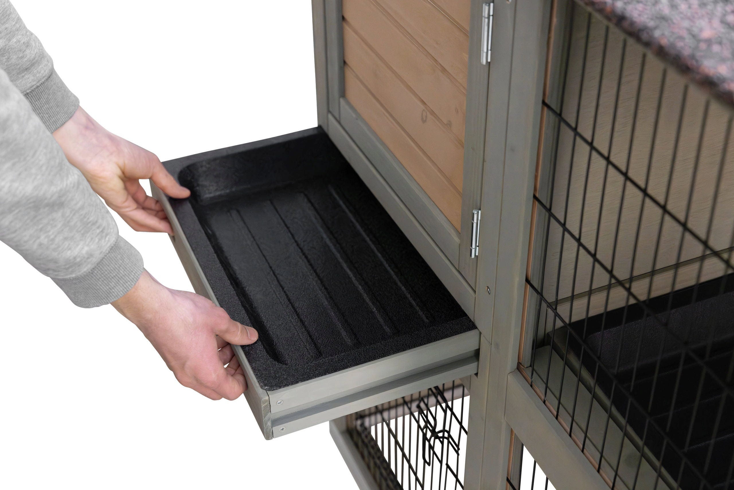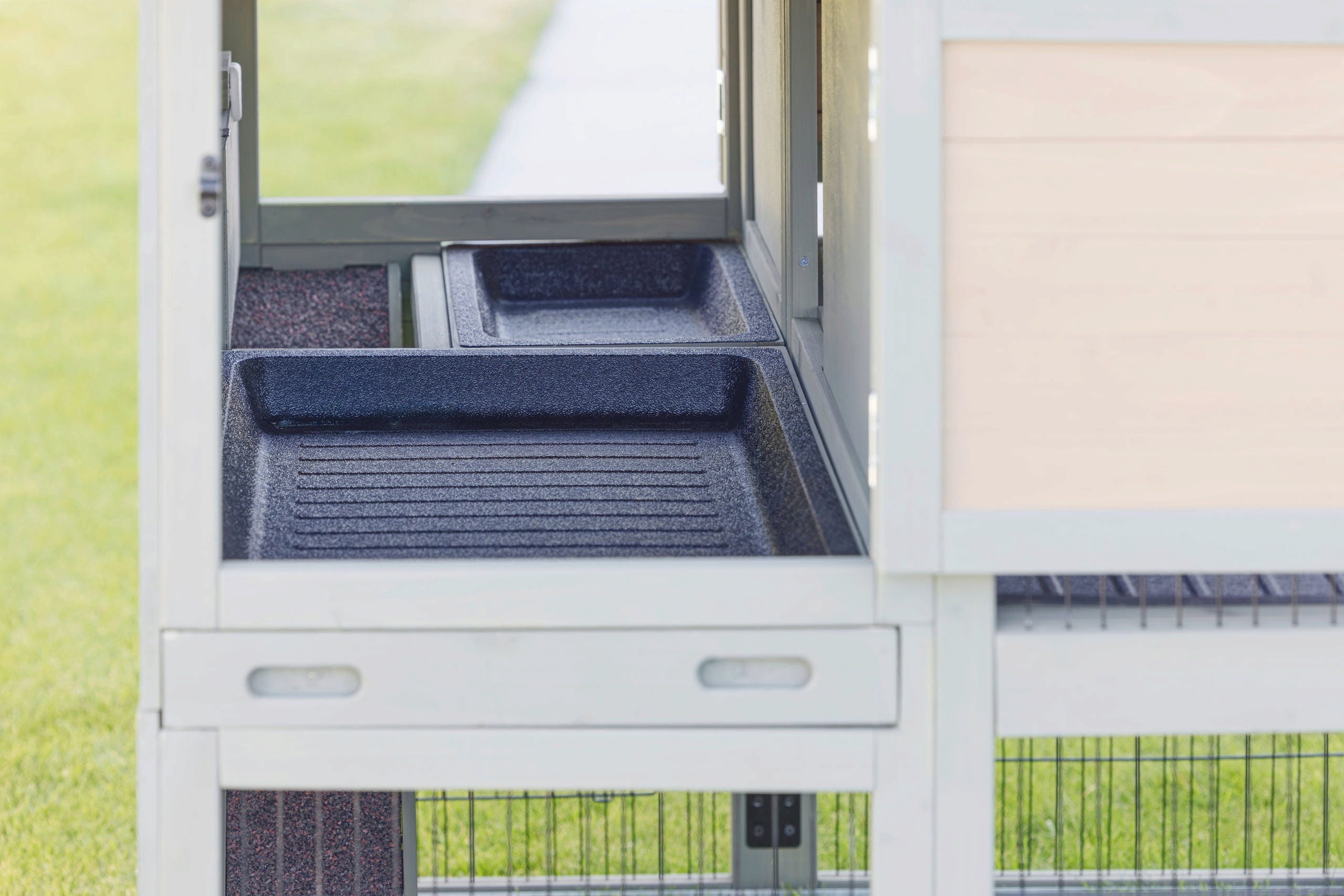 - Freilauf: Über eine integrierte Rampe gelangen die Tiere bequem in den unteren Freilaufbereich.
