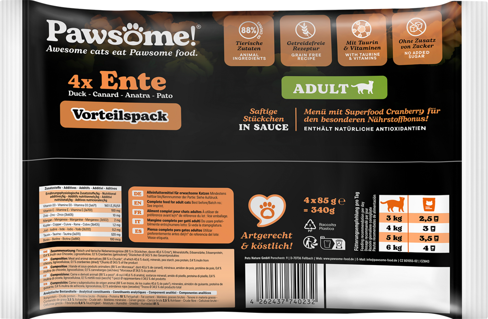 Pawsome! Adult Ente, 4 x 85 g (340 g)