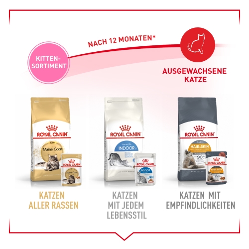 *Große Rassen, wie die Maine Coon, sind mit 15 Monaten ausgewachsen