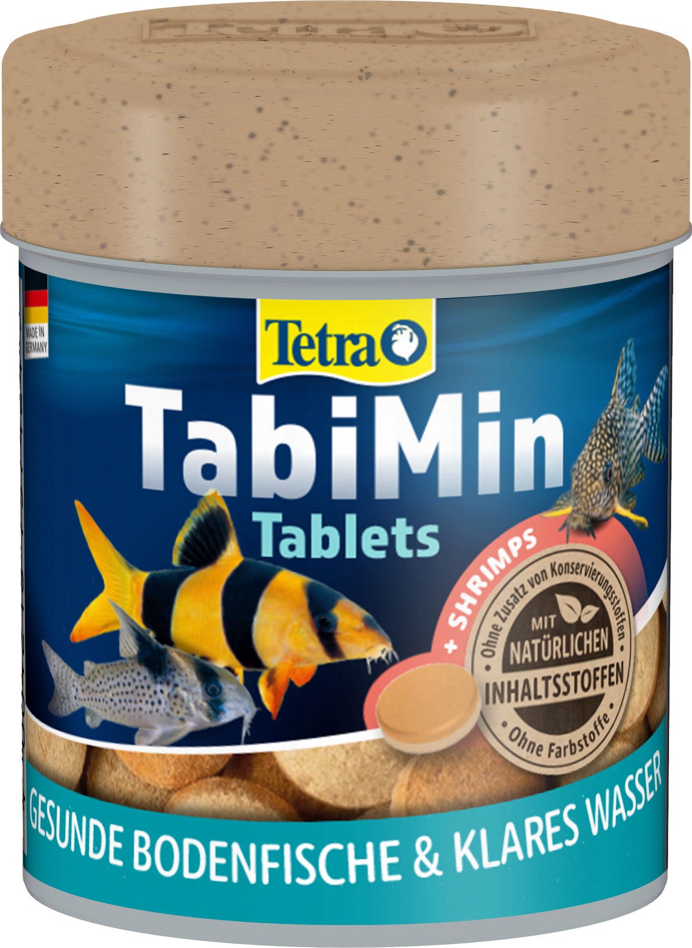 Tetra Tablets TabiMin ist ein biologisch ausgewogenes, nährstoffreiches Premium-Tablettenfutter für alle bodenfressenden Fische. Die Tabletten sinken schnell, können gut an versteckten Stellen für scheue Fische platziert werden und lösen sich für eine leichte Futteraufnahme langsam auf, ohne dabei zu zerfallen oder das Wasser zu trüben. Die neue Multi Tabletten Formel enthält Shrimps für eine verbesserte Akzeptanz sowie alle lebenswichtigen Nährstoffe, Vitamine und Mineralstoffe. Seetang mit vielen natürlichen Mineralien und Carotionoiden tragen zur natürlichen Verstärkung der Farbenpracht bei. Tetra Futter ist gut verdaulich- so wird das Wasser weniger belastet, bleibt sauber und klar.