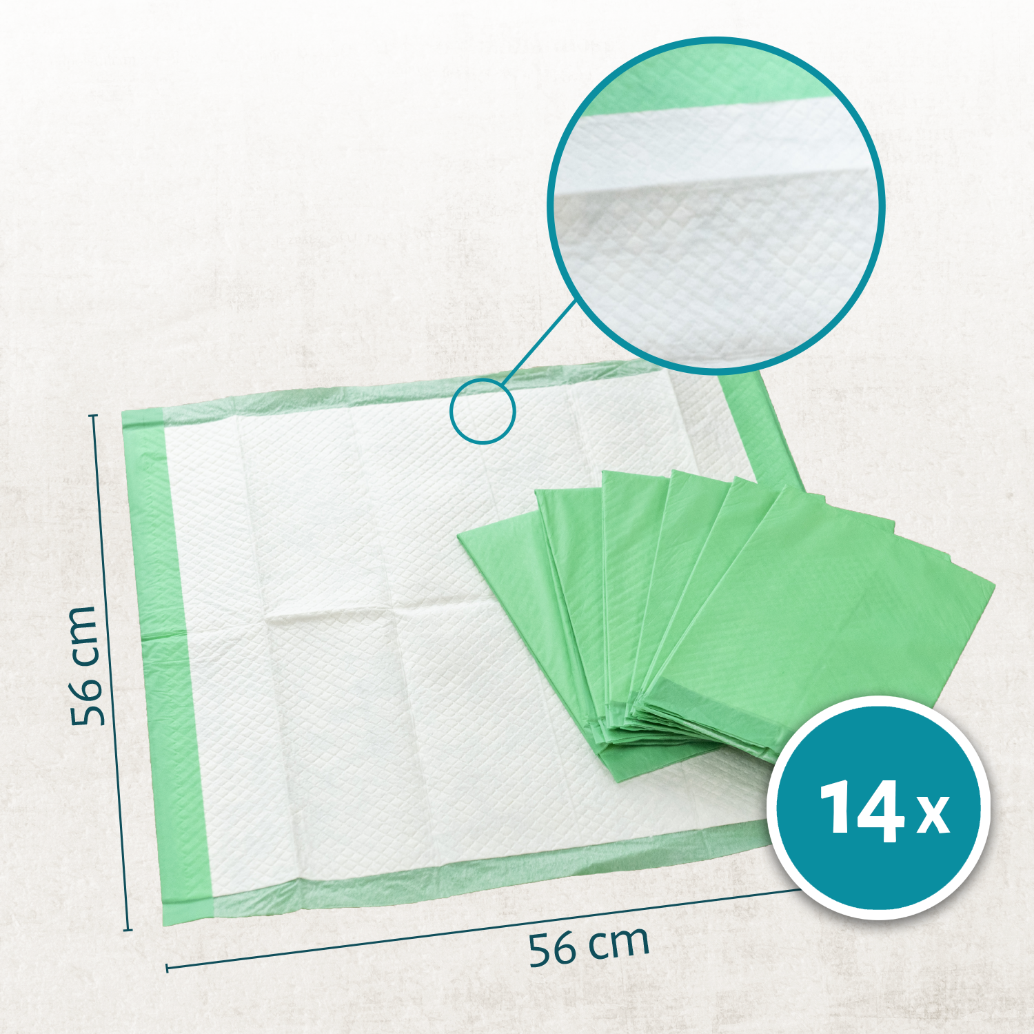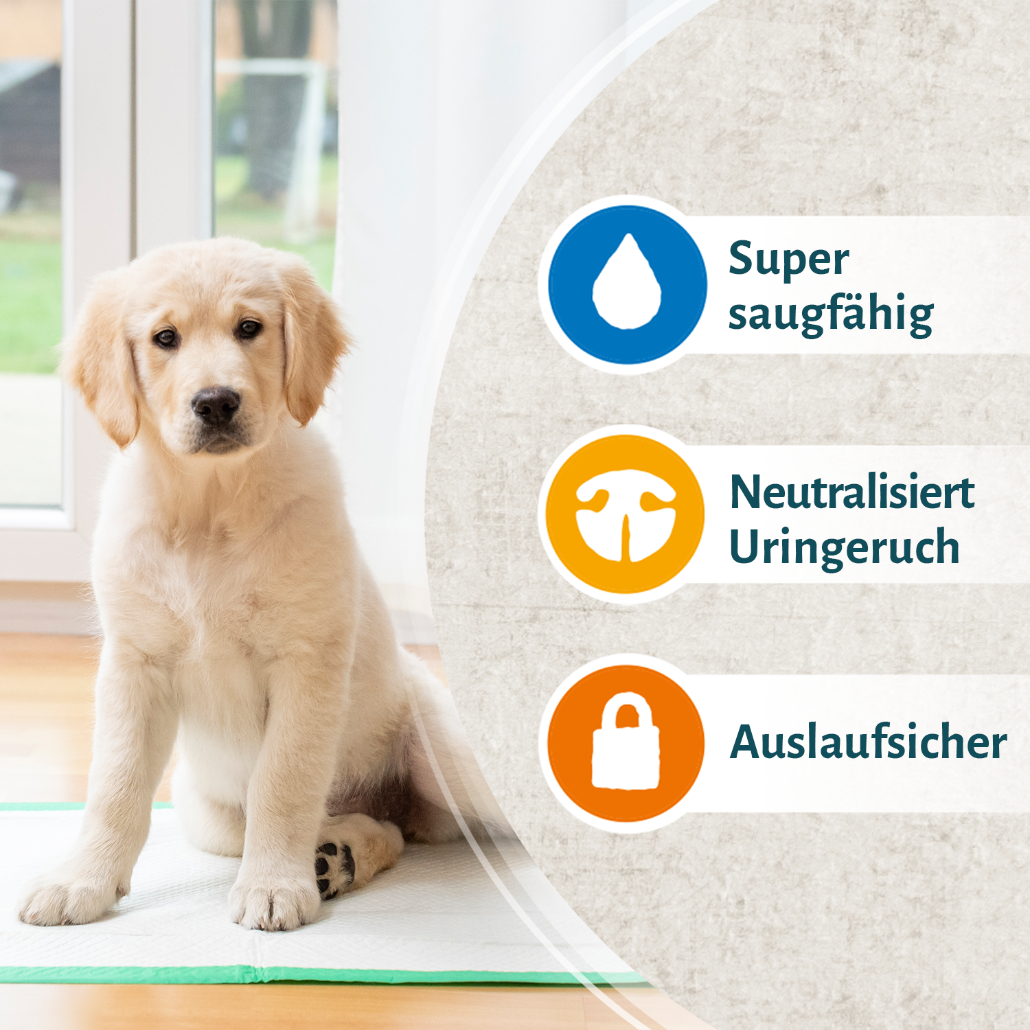 Les chiots et les chiens âgés ou malades ne peuvent souvent pas contrôler leur vessie. Ces tapis de propreté à 5 couches offre une solution optimale ! Absorbants et anti-fuites, ils sont dotés par un parfum d'herbe familier, ce qui incite naturellement les animaux de compagnie déjà propres à faire leurs besoins. Ces tapis faciles à utiliser sont également adaptés à l'apprentissage de la propreté pour les chiots : grâce à l'odeur spécifique et accueillante de l'herbe, les chiots peuvent apprendre à associer l'odeur de l'herbe à l'heure du pot. La protection à 5 couches réduit efficacement l'odeur d'urine.
