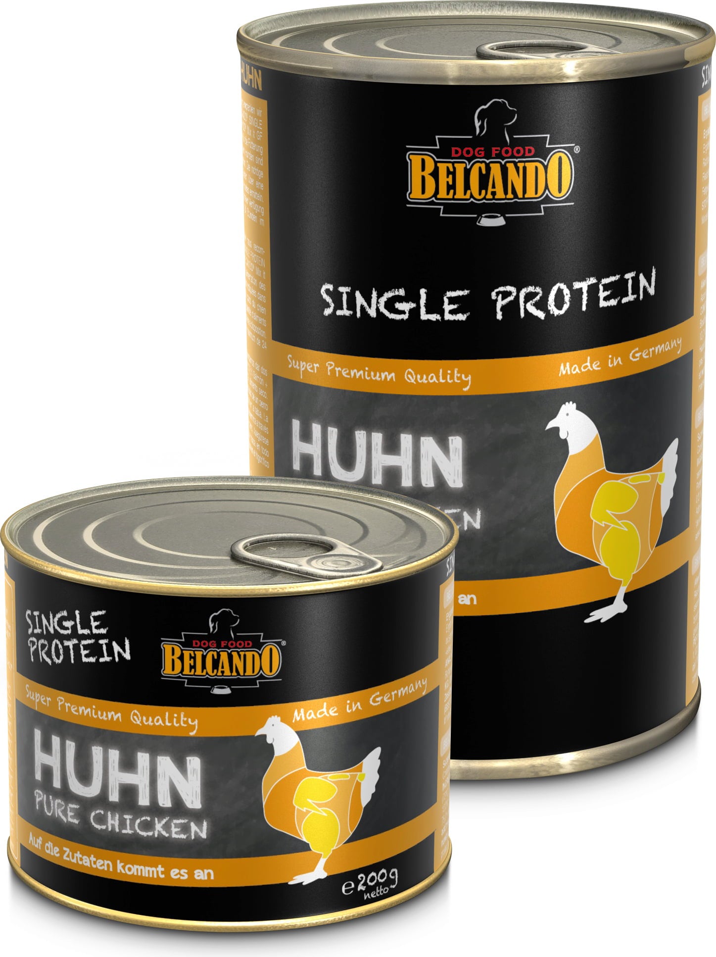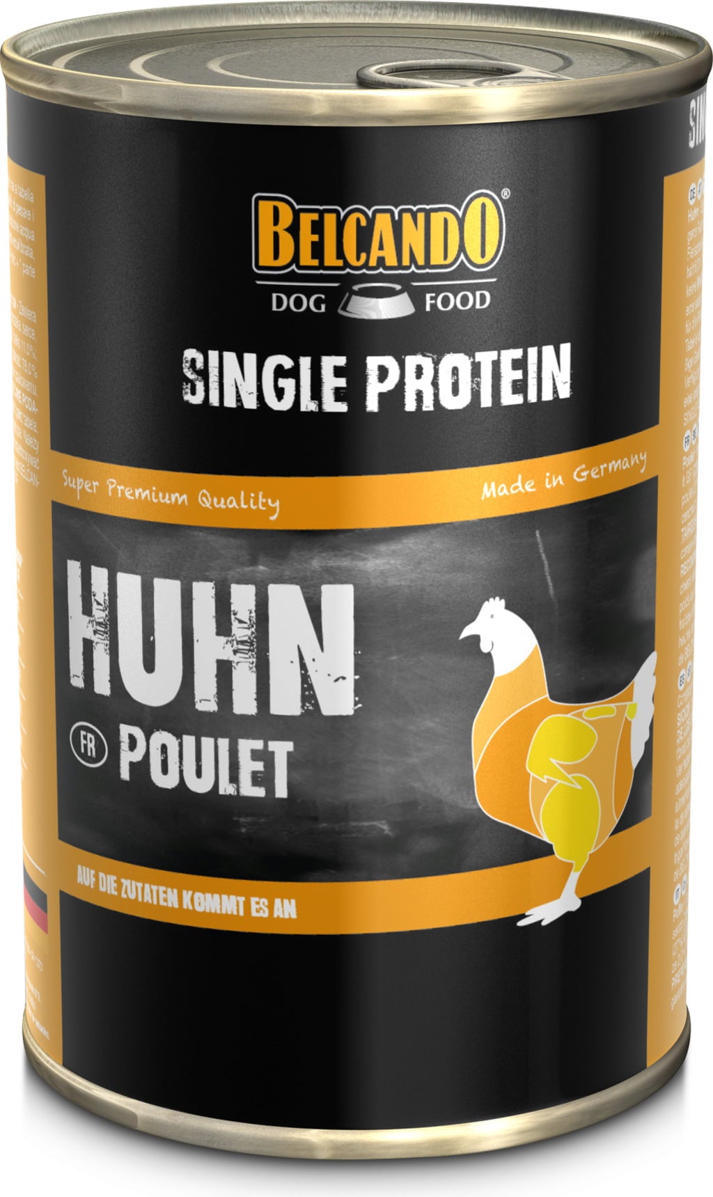 Mode d’emploi : il est recommandé de mélanger Belcando® Single-Protein avec Belcando® Mix it. Utiliser 2 parts de nourriture en boîte pour 1 part de nourriture sèche. Toujours mettre de l’eau fraîche à disposition pendant les repas.