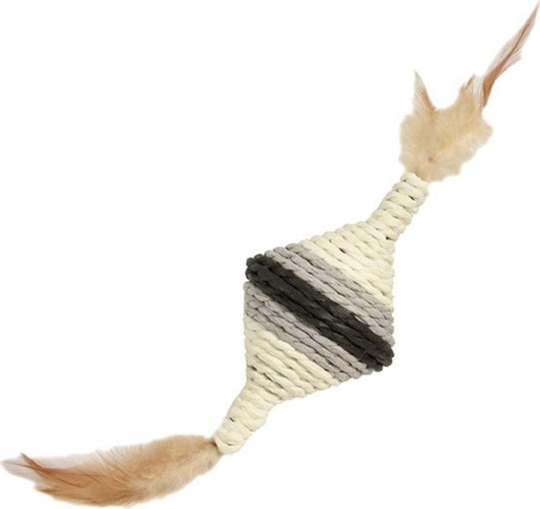 Matériau innovant, plaisir de jeu maximal : ce jouet de Bobby est entièrement composé de corde en papier recyclé, habilement enroulée autour d'une forme de toupie. Aux deux extrémités, de véritables plumes stimulent l'instinct naturel de jeu et de chasse du chat. Grâce à sa petite taille, les chats et les petits chiens peuvent porter le jouet sans effort.