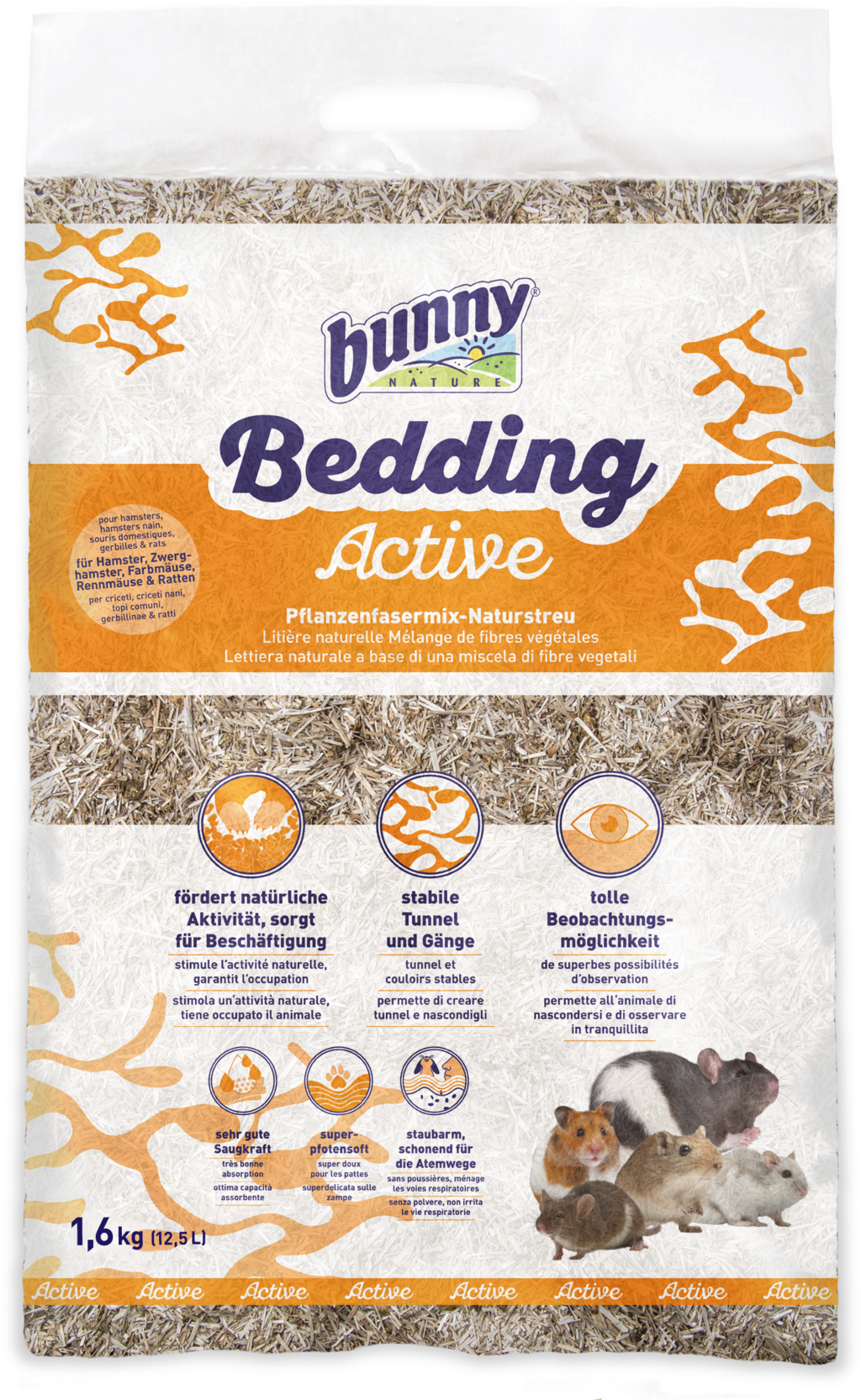 Cette litière naturelle de qualité, d’origine exclusivement végétale et composée de fibres de lin, de bois de pin et de pellets de paille, offre à vos compagnons à quatre pattes une surface parfaitement adaptée à leur espèce. Agréablement douce pour les pattes, elle est également idéale pour jouer, se cacher et construire des tunnels stables. Elle procure ainsi un grand plaisir d’exploration à vos animaux et permet de les observer en toute tranquillité.