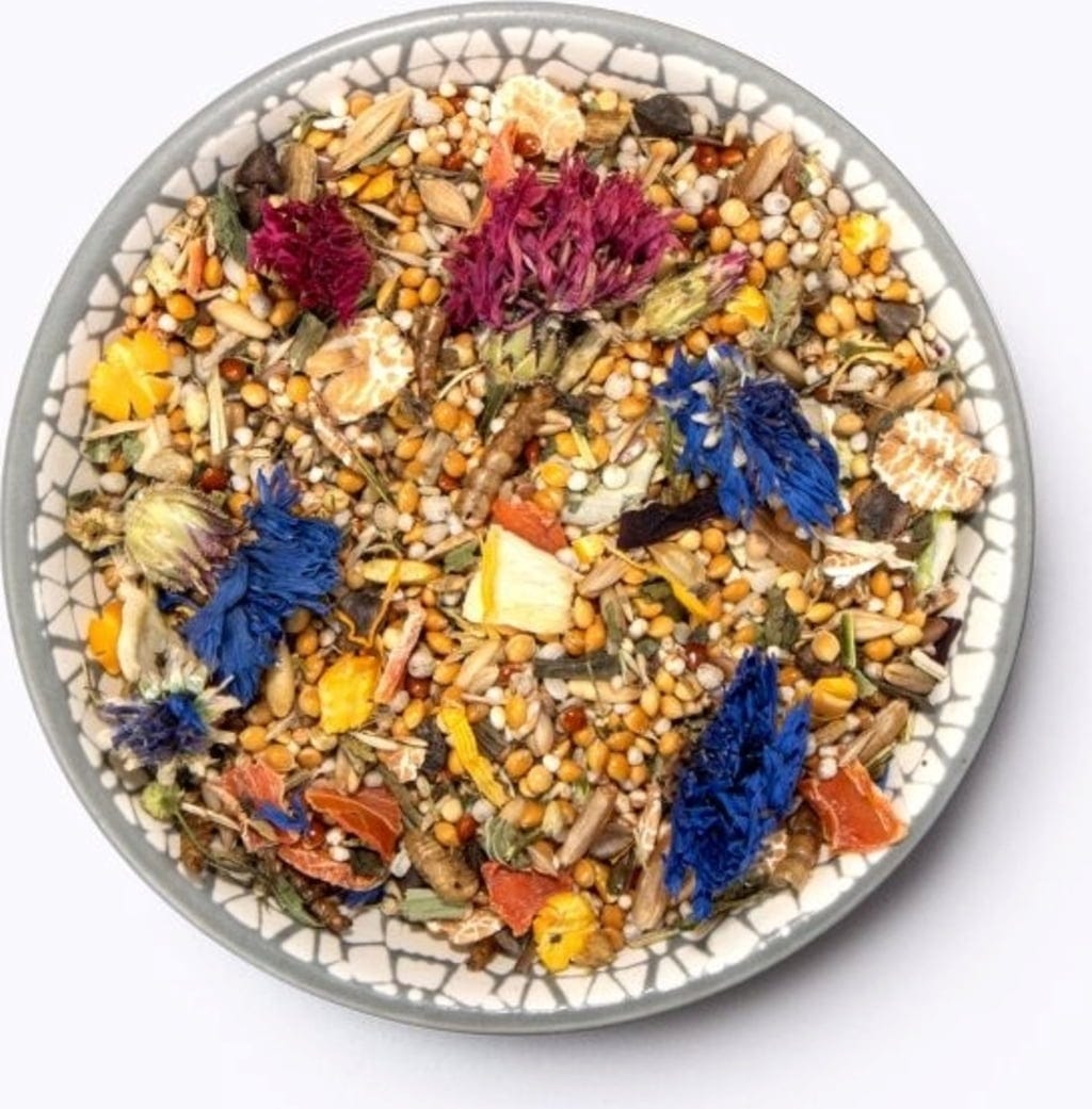 - Mélange adapté à l’espèce, composé d’ingrédients végétaux et animaux
