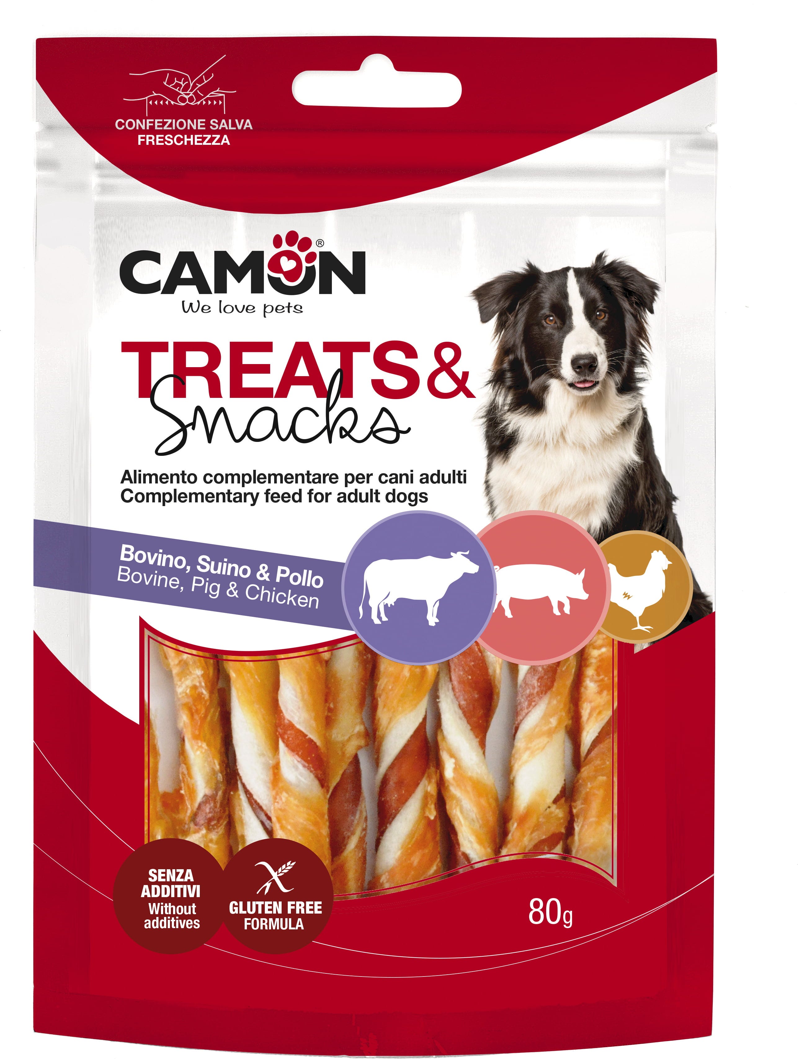 Camon Rouleau à Mâcher de Camon au Bœuf, Porc et Poulet, 80 g