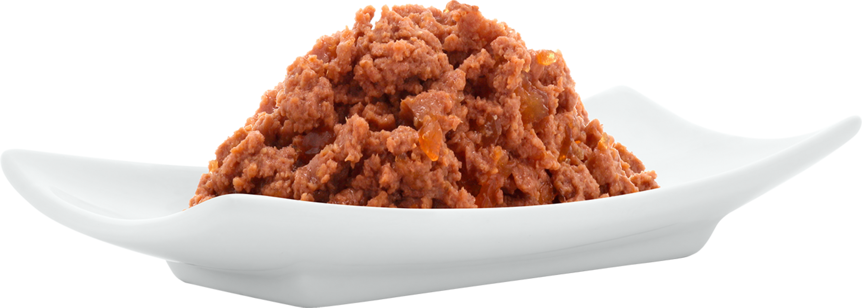 - Plus de 94 % de viande, poisson, fruits de mer, abats et bouillon de cuisson, complétés par une faible proportion de légumes, de fruits et d'autres ingrédients adaptés aux chats