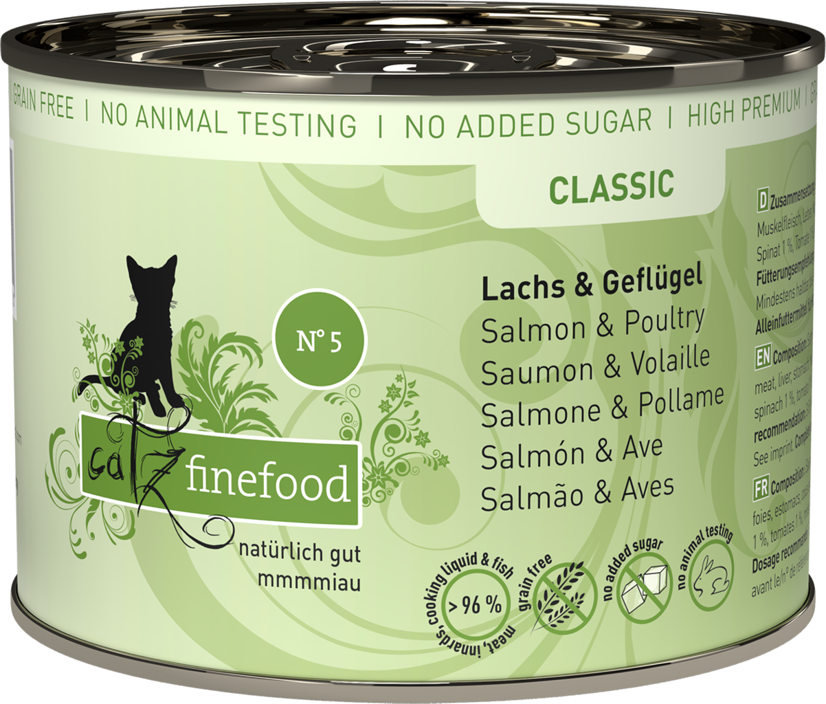 avis en français à propos du produit catz finefood Alimentation Humide Classic No. 05 Saumon et Volaille Acana