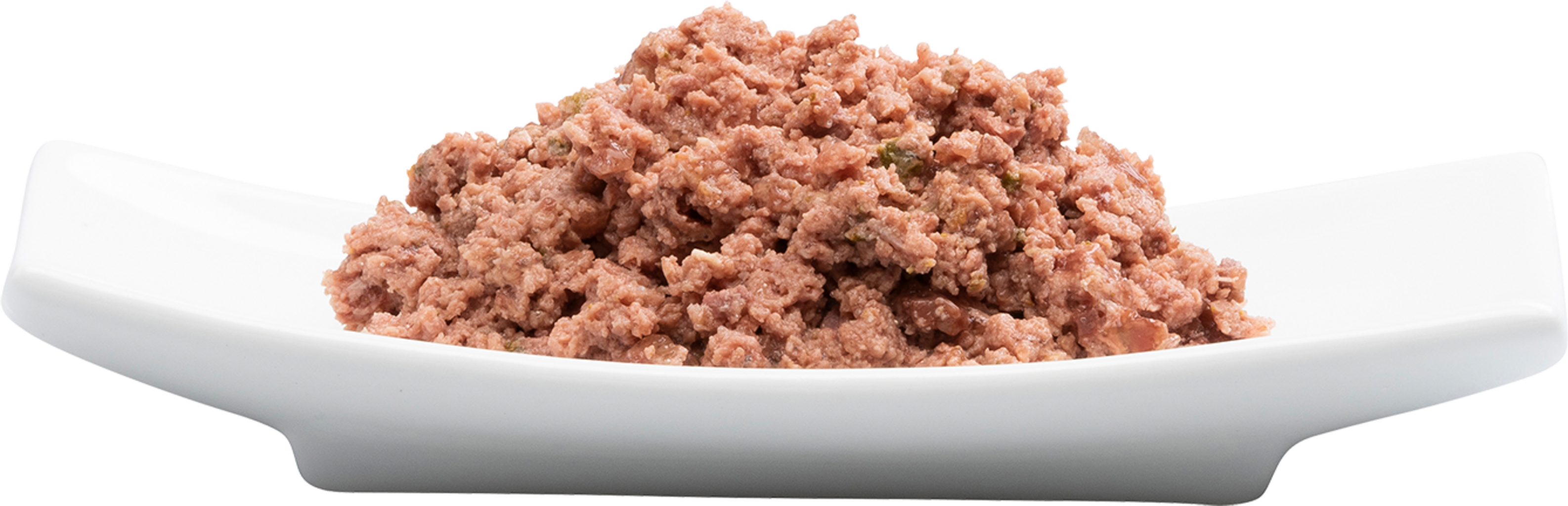 - Plus de 93% de viande, poisson, fruits de mer, abats et bouillon de cuisson, complétés par des légumes, des fruits, des herbes et des huiles précieuses, comme le contenu de l'estomac des proies