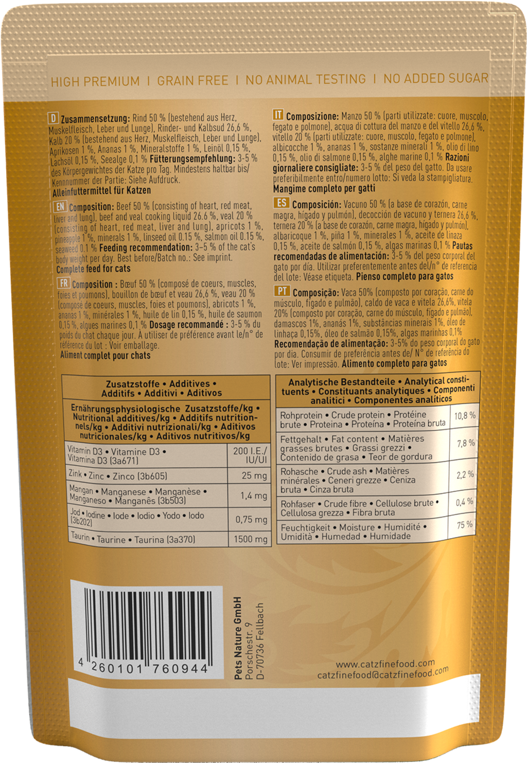 avis en français à propos du produit catz finefood Classic No. 07 Bœuf et Veau Pouch