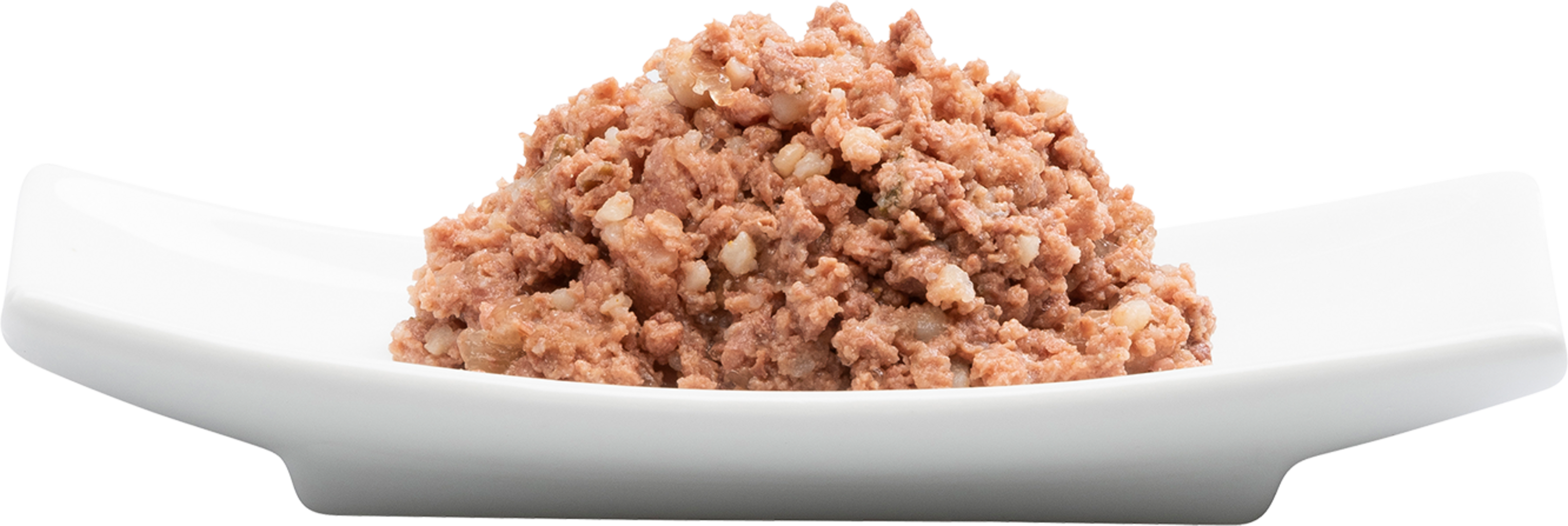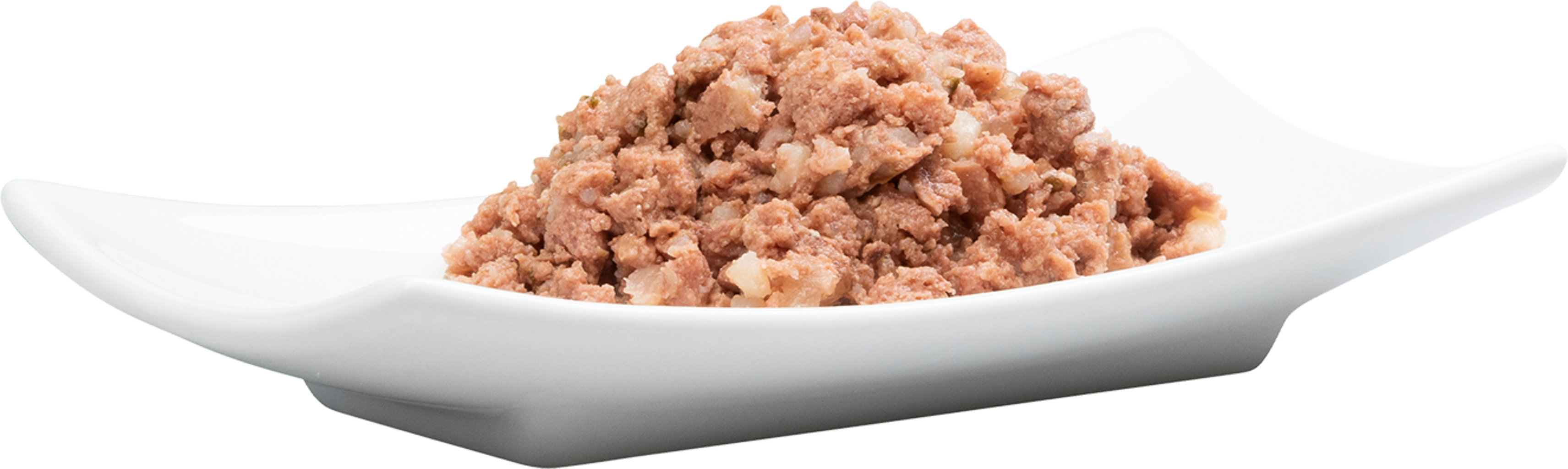 - Plus de 93 % de viande, poisson, fruits de mer, abats et bouillon de cuisson, complétés par des légumes, des fruits, des herbes et des huiles précieuses, comme le contenu de l'estomac des proies