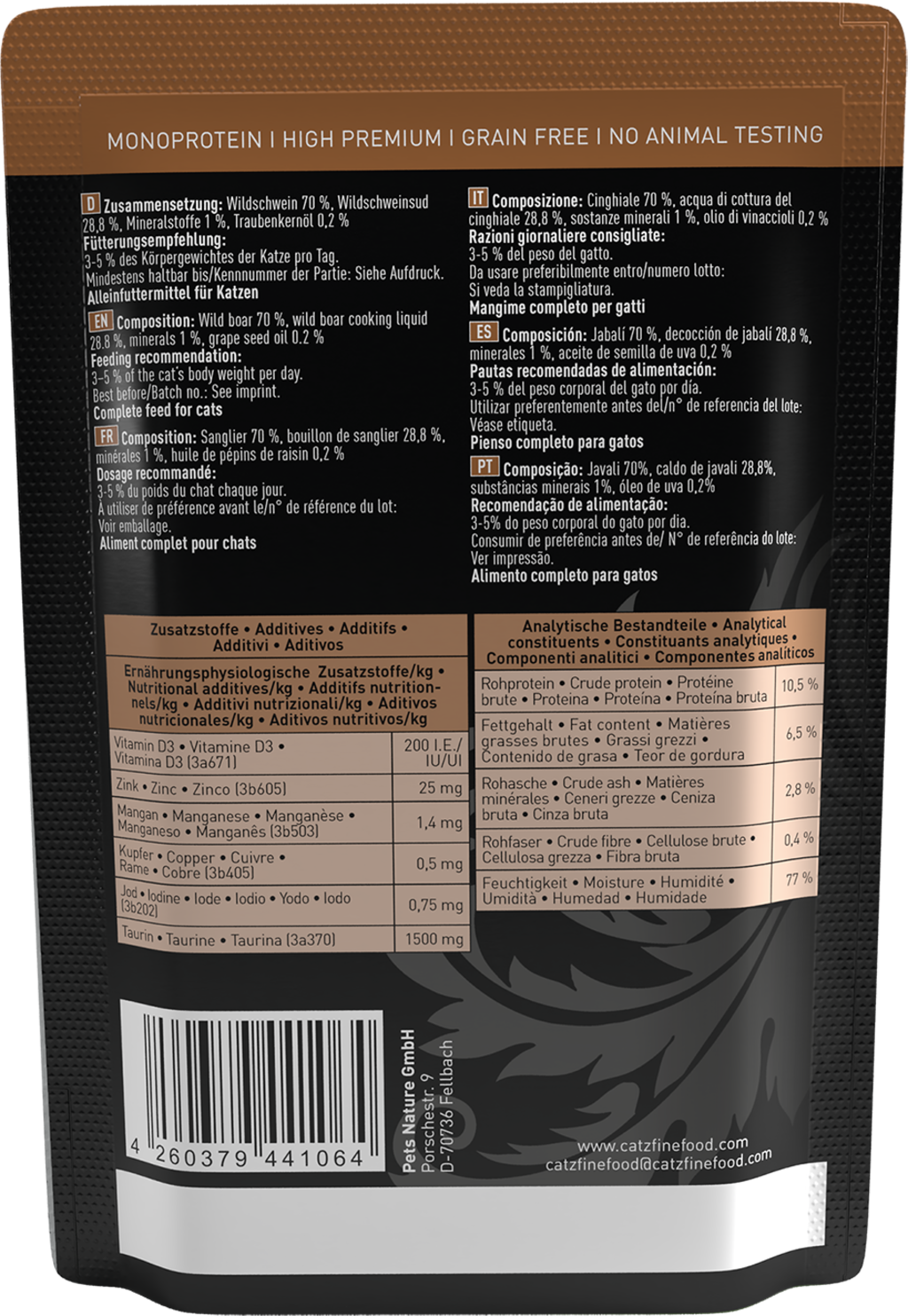 avis en français à propos du produit catz finefood Purrrr No. 109 Sanglier - Pouch