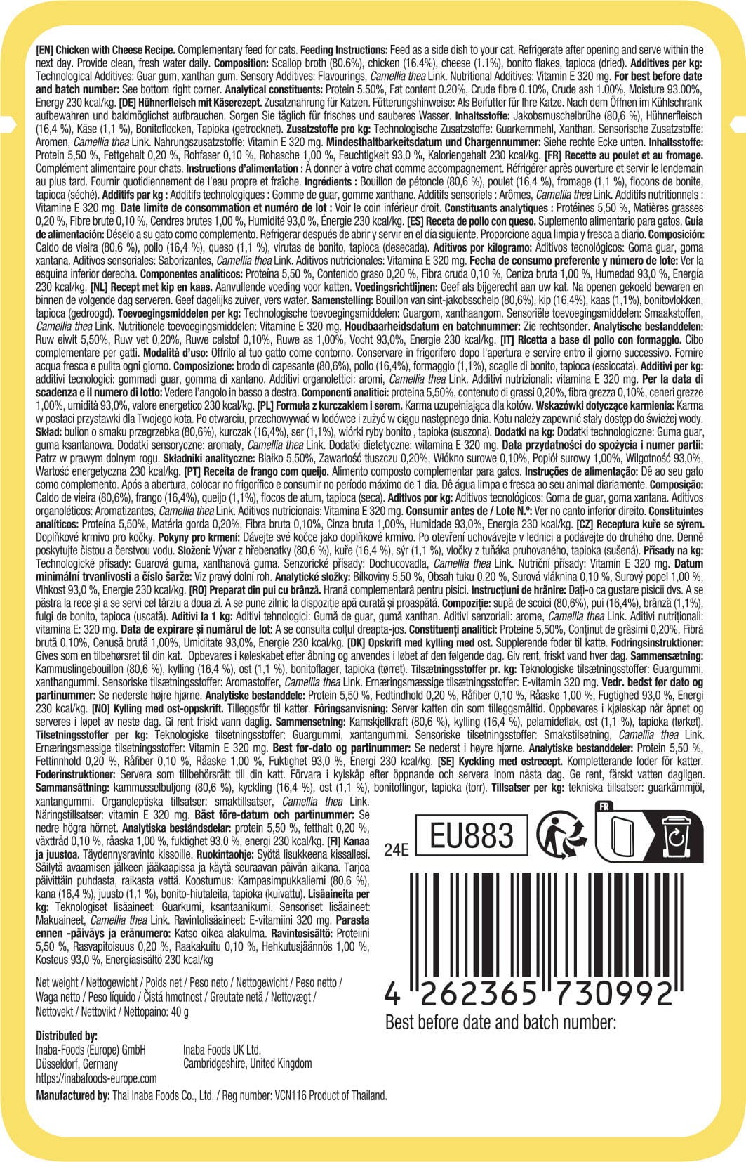| Fabricant: | Inaba Foods GmbH, Berliner Allee 29, 40212, Düsseldorf, Allemagne, wo_meissner@inaba-foods.co.jp, www.inabafoods-europe.com |