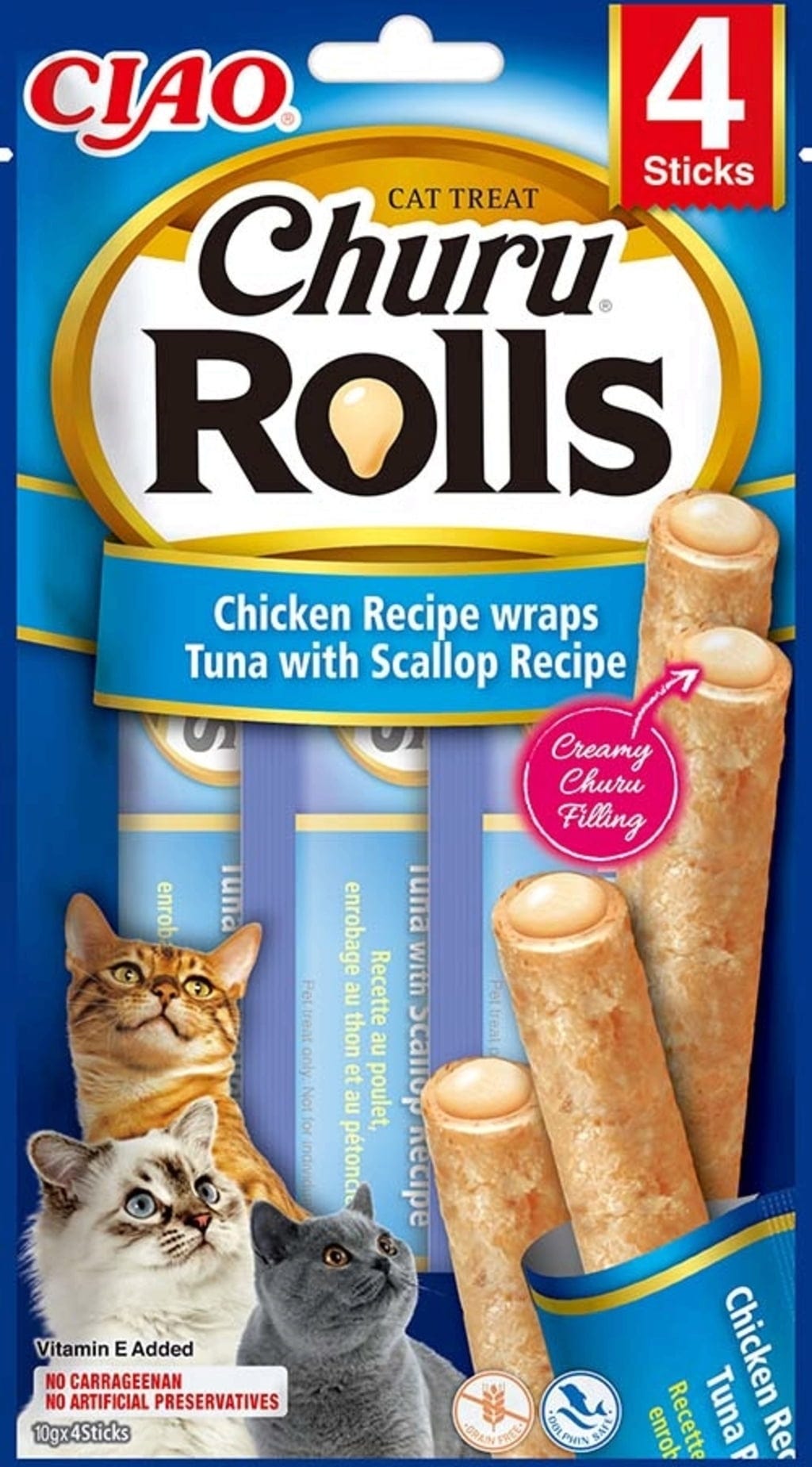 Churu Rolls 4x10 g, Wraps de poulet au thon et aux noix de Saint-Jacques (40 g)