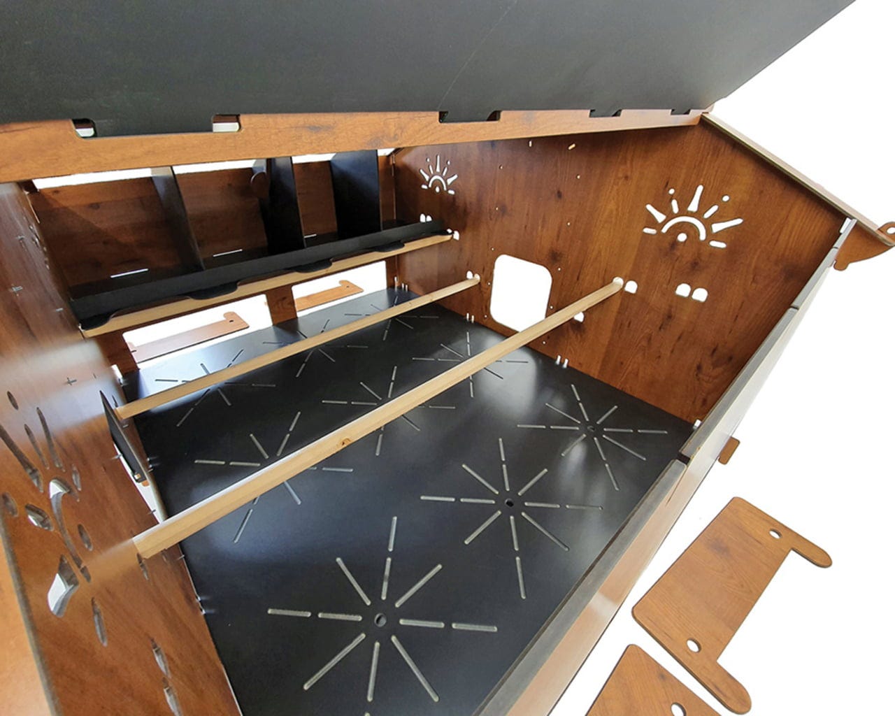 La fabrication en stratifié HPL rend ce poulailler particulièrement robuste et résistant. Elle ne laisse aucune prise aux parasites tels que les acariens ni aux prédateurs, ce qui constitue un atout aussi bien pour les poules que pour les éleveurs.