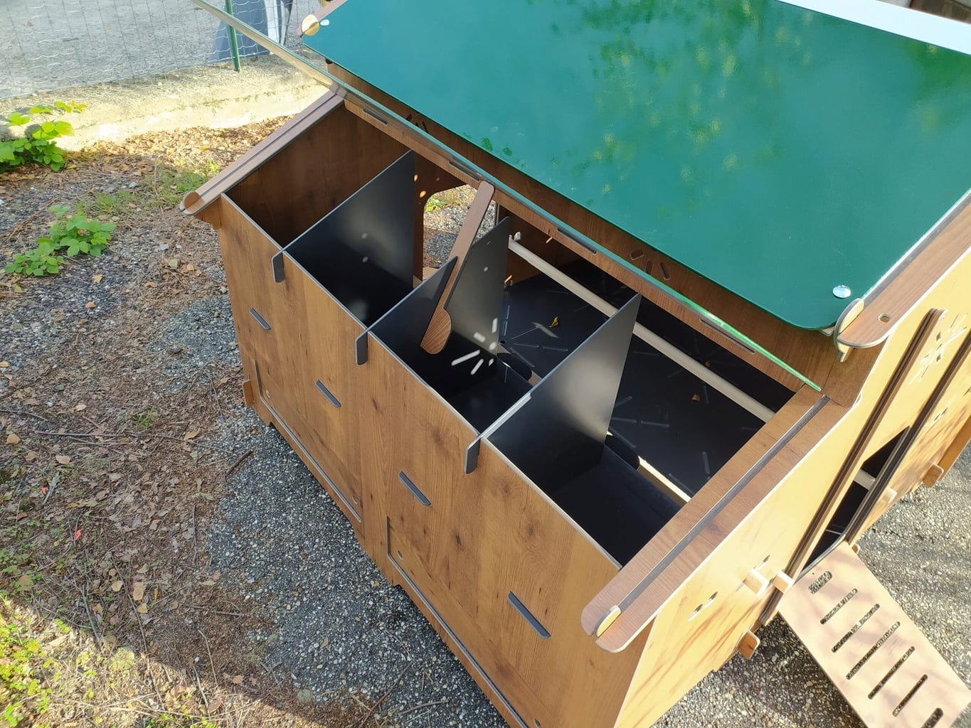 - Collecte facile des œufs grâce au toit relevable