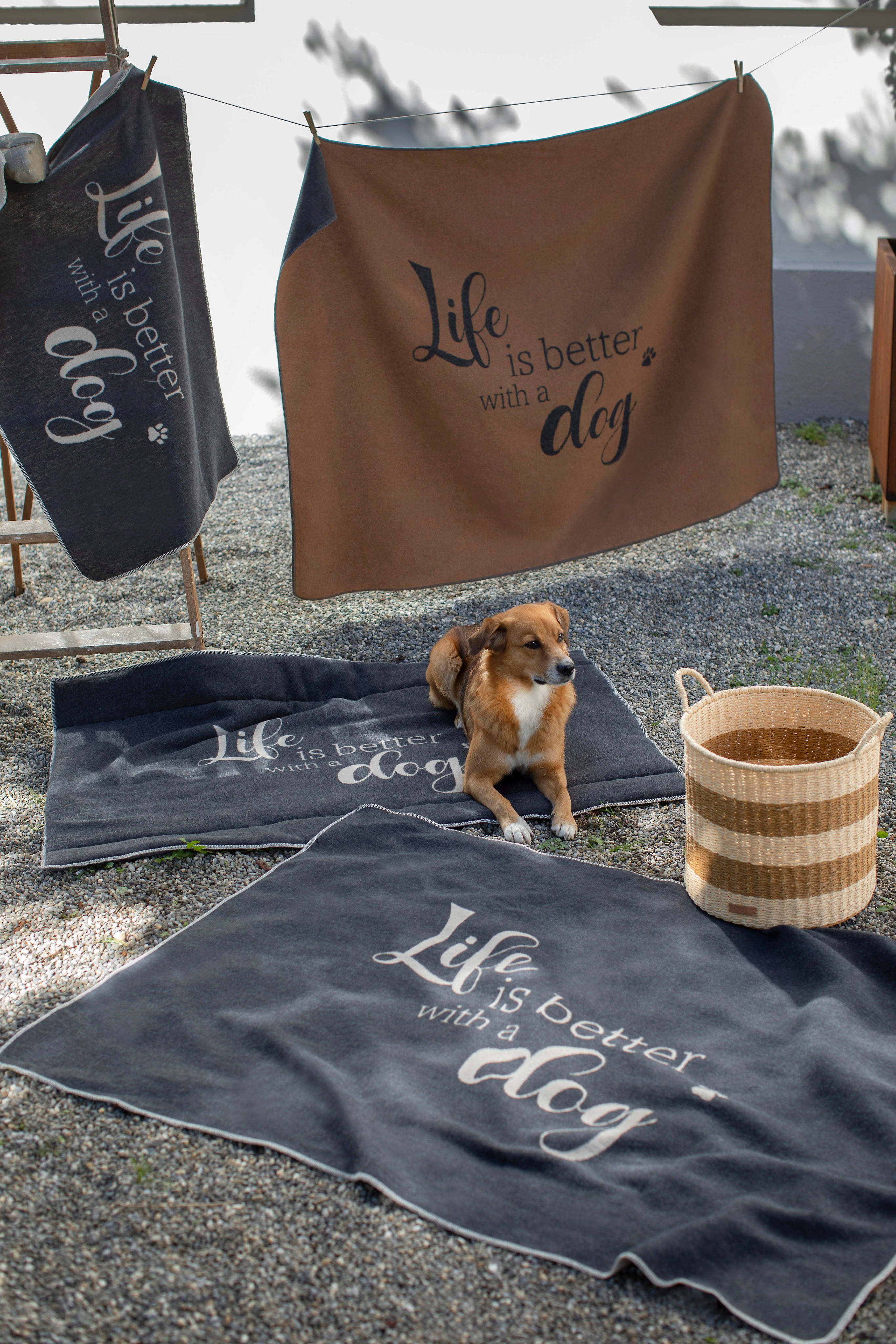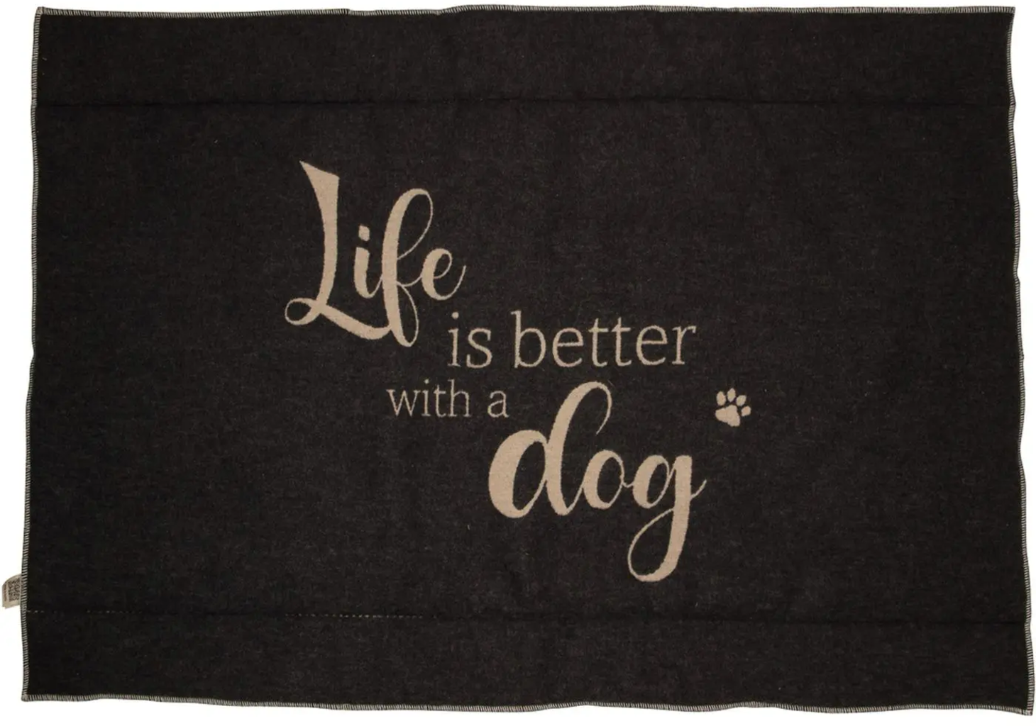 Le tapis pour chien avec l'inscription "Life is better with a dog" devient un espace de câlin idéal pour votre compagnon à quatre pattes. Mesurant 80 x 120 cm, ce tapis est facilement lavable en machine à 40°C, cycle délicat.