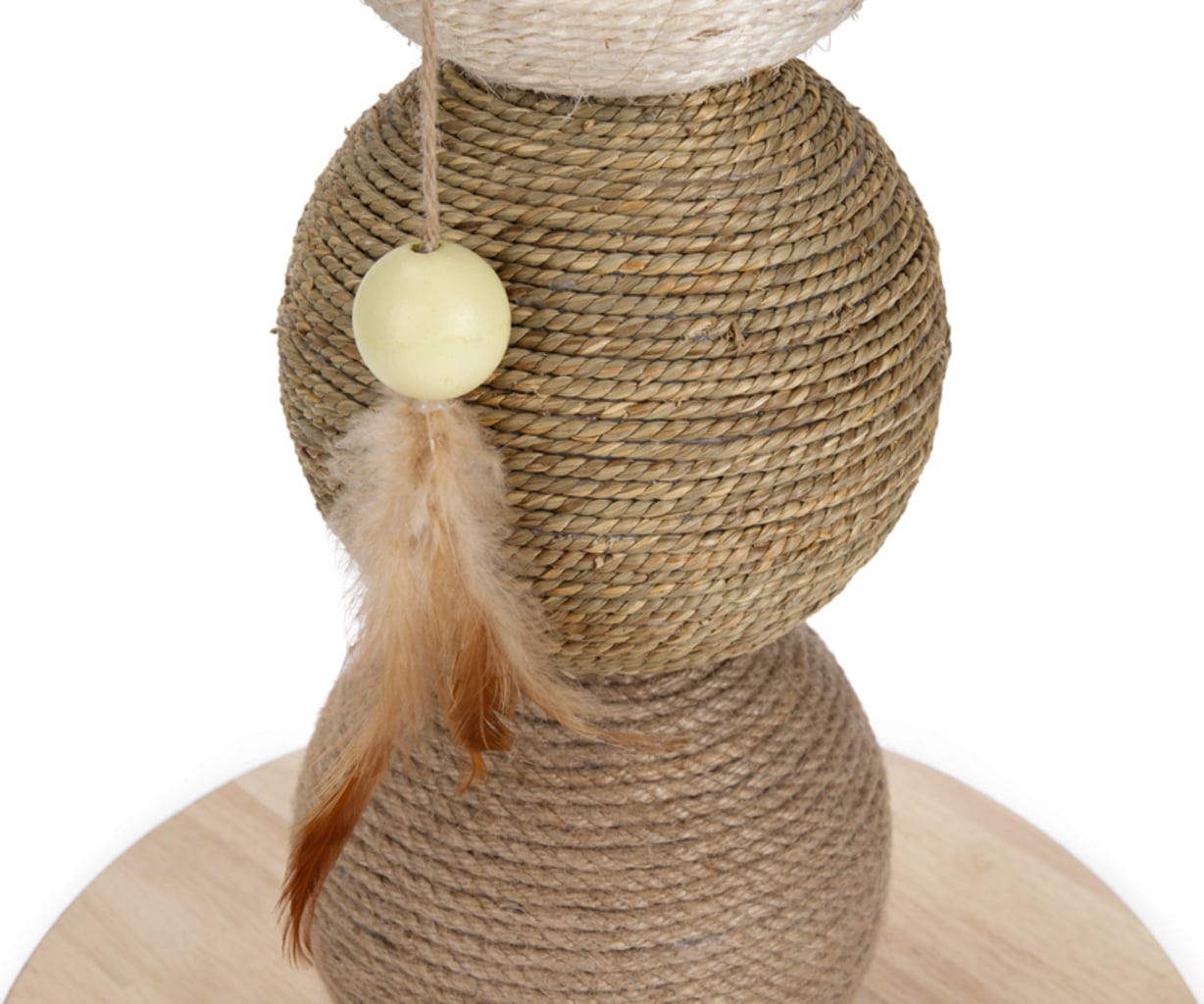 Ce tour griffoir et de jeu attire tous les regards et constitue non seulement une activité idéale pour votre chat, mais aussi un élément décoratif élégant pour votre intérieur. Les trois balles superposées sont chacune enveloppées d’un matériau différent, offrant ainsi une grande variété de textures. La balle à plume intégrée apporte une touche supplémentaire de divertissement et invite à la poursuite.
