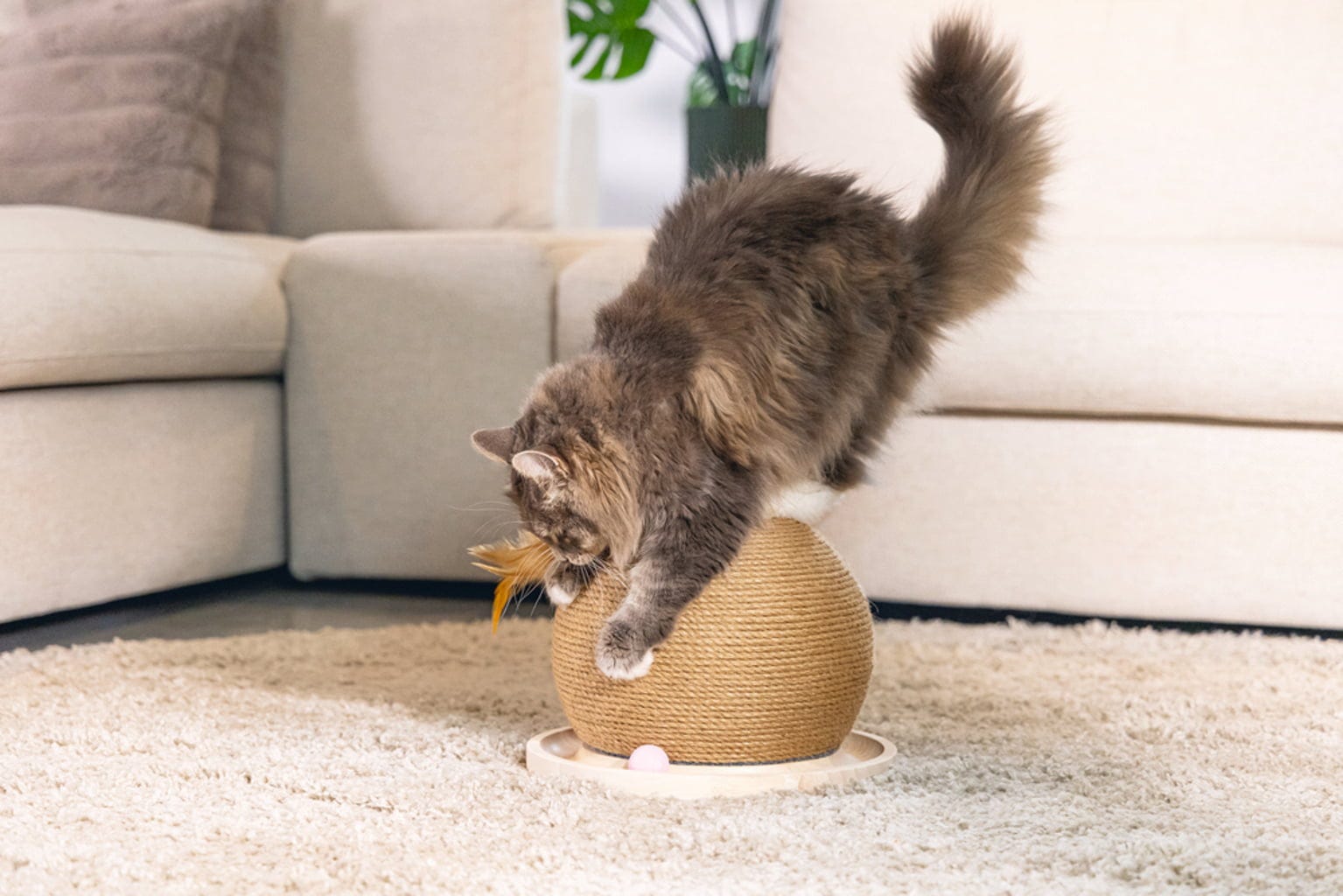 Faire ses griffes et jouer en même temps fait le bonheur de chaque chat. Cet accessoire offre de longues heures de divertissement : la sphère enveloppée de corde de jute est idéale pour aiguiser les griffes, tandis que la balle suspendue ainsi que les deux balles intégrées dans la rainure chassent l’ennui en un instant.
