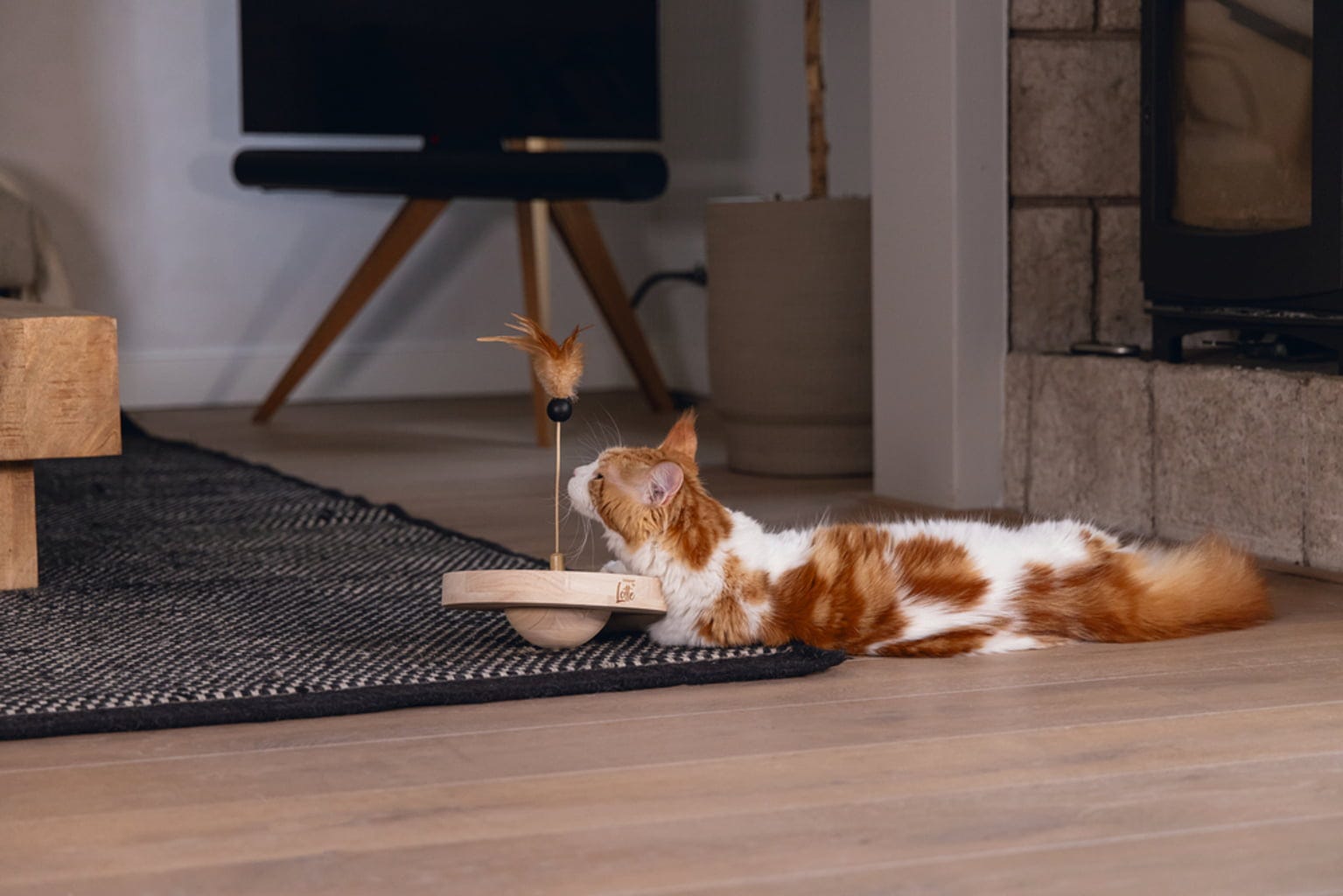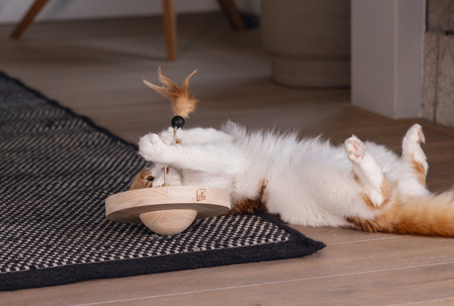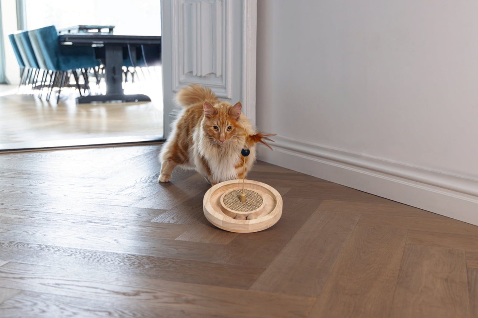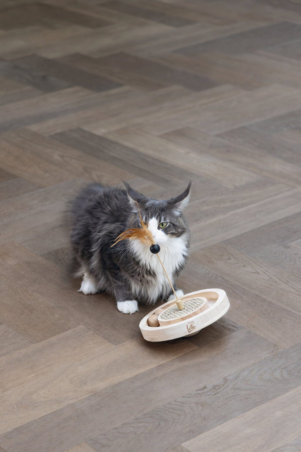 Ce jouet oscille, tourne et se balance en permanence, ce qui le rend idéal pour occuper votre chat pendant longtemps. La base semi-sphérique crée un mouvement de bascule qui met en action les balles intégrées, tandis que le plumeau fixé sur le griffoir en sisal s’anime également. Un jeu particulièrement divertissant pour votre compagnon à quatre pattes.