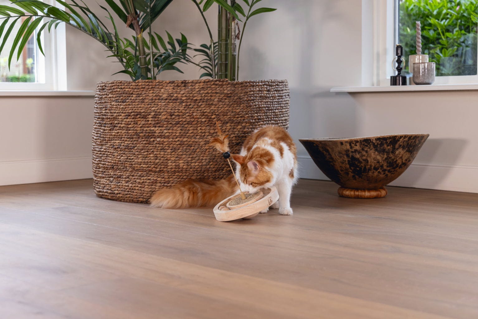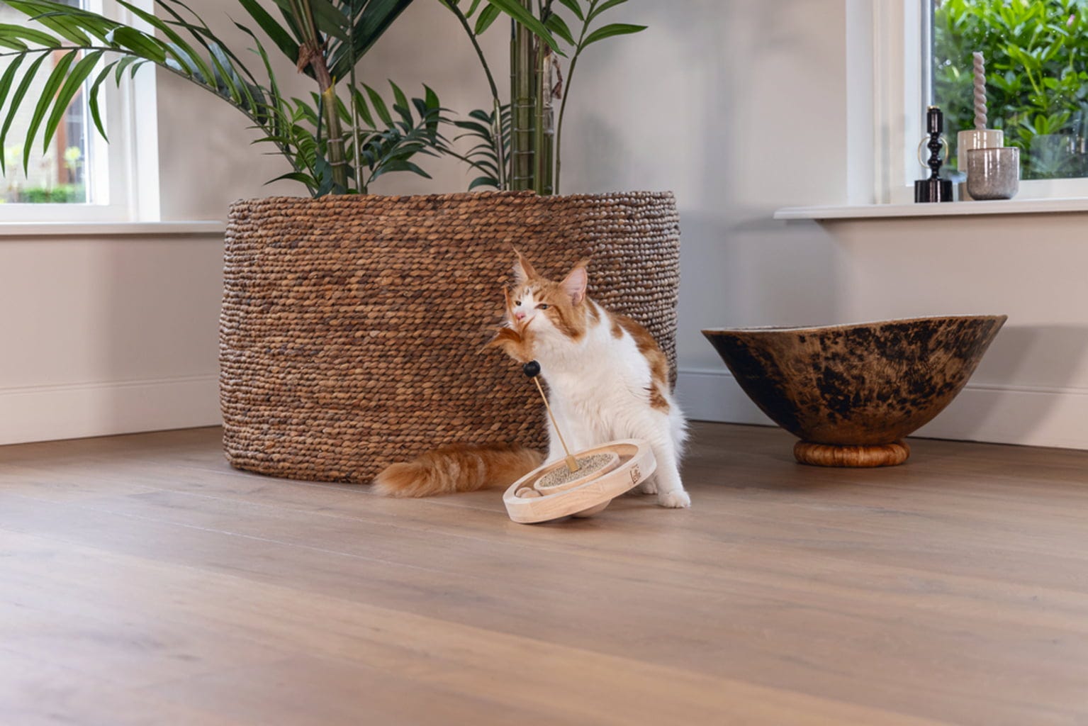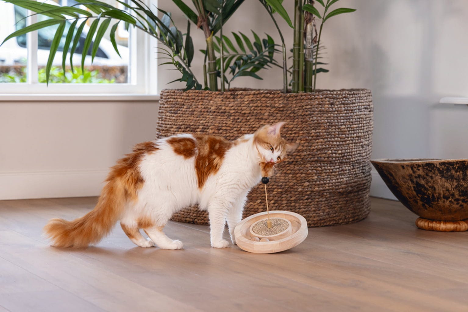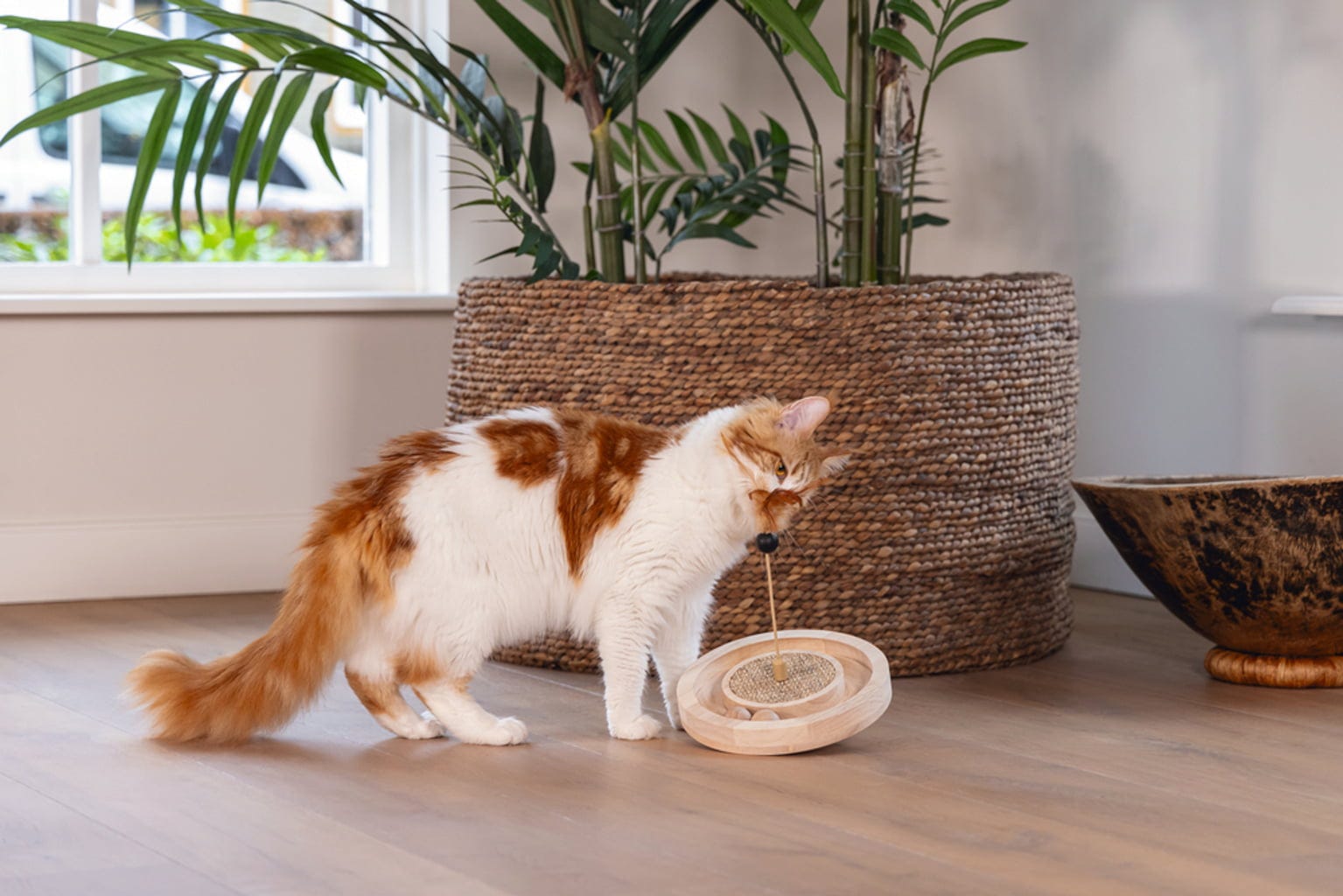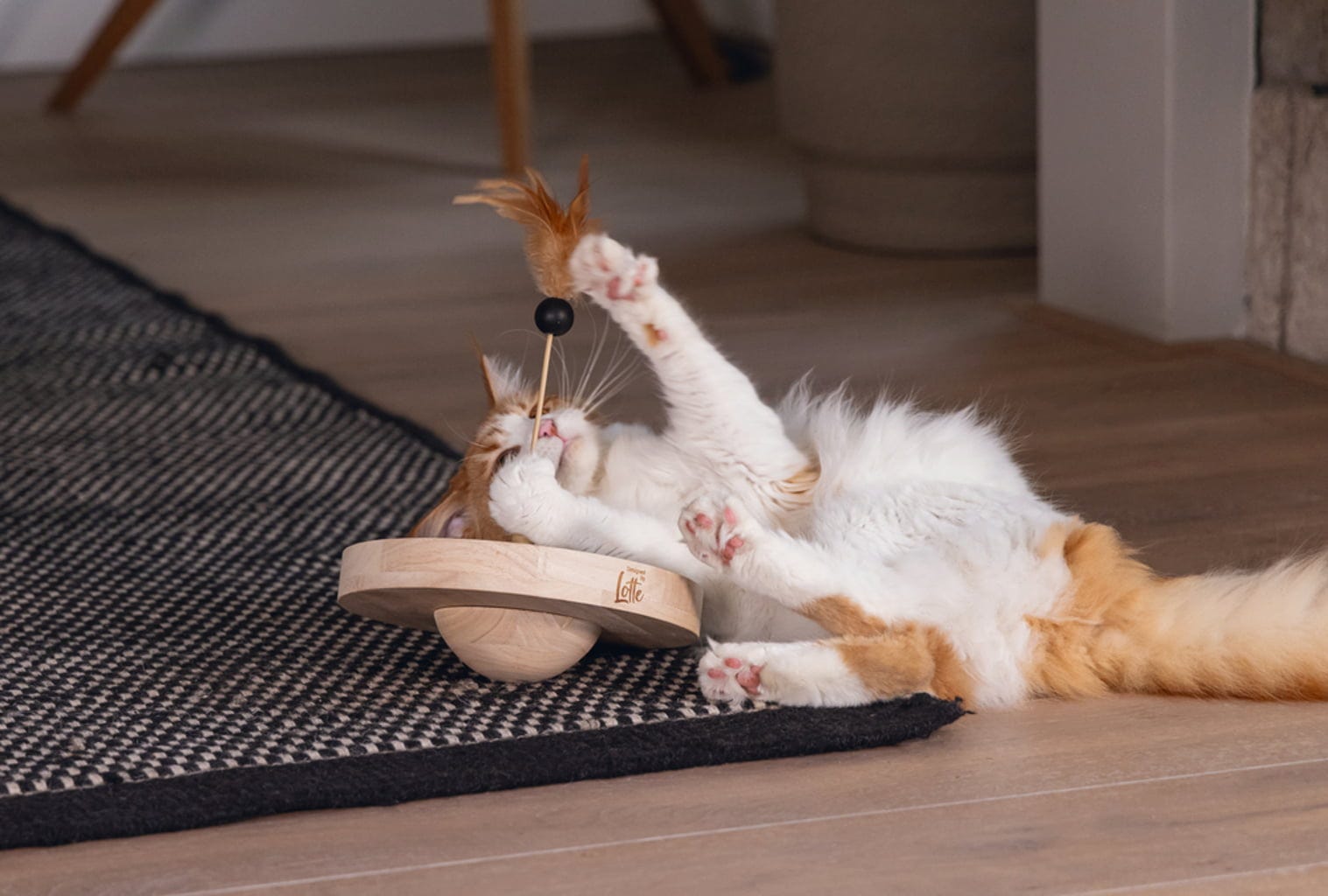 Ce jouet oscille, tourne et se balance en permanence, ce qui le rend idéal pour occuper votre chat pendant longtemps. La base semi-sphérique crée un mouvement de bascule qui met en action les balles intégrées, tandis que le plumeau fixé sur le griffoir en sisal s’anime également. Un jeu particulièrement divertissant pour votre compagnon à quatre pattes.