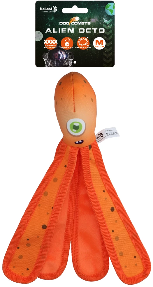 Ce jouet ludique d’un orange éclatant apporte un divertissement intergalactique à votre intérieur. Avec ses bras bruissants et sa tête qui émet des sons amusants, il stimule l’instinct naturel de jeu de votre chien, aussi bien sur la terre ferme que dans l’eau, et apporte une agréable variété au quotidien.