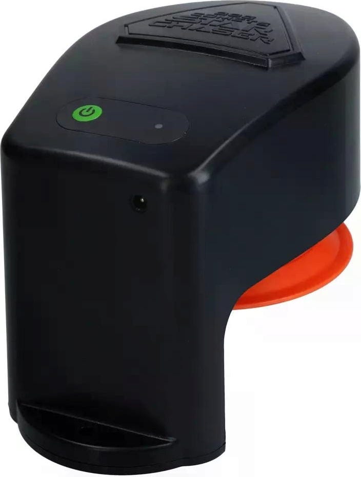 Contenu de la livraison : 1 unité principale, 3 poulies, 4 piquets, 100 m de corde, 3 leurres artificiels, 3 rouleaux de sacs en plastique (à utiliser comme leurre), télécommande (2 piles AAA incluses), chargeur, sac à dos.