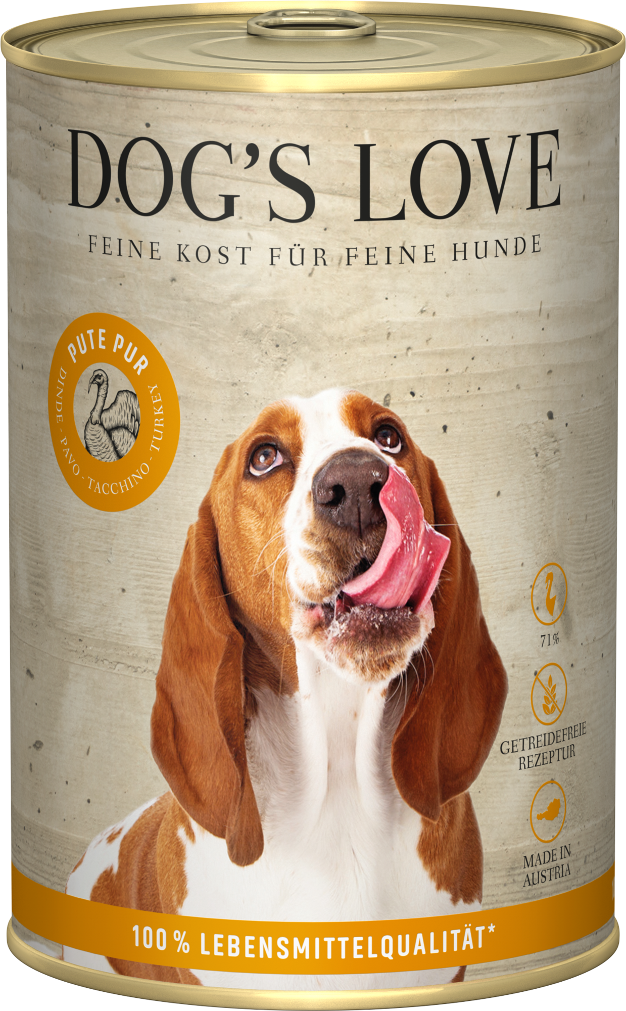 Pratique à transporter et optimal pour un régime exclusif : Le menu pure viande de Dog's Love offre 100 % de qualité avec 90 % de viande pour les chiens de tout âge.