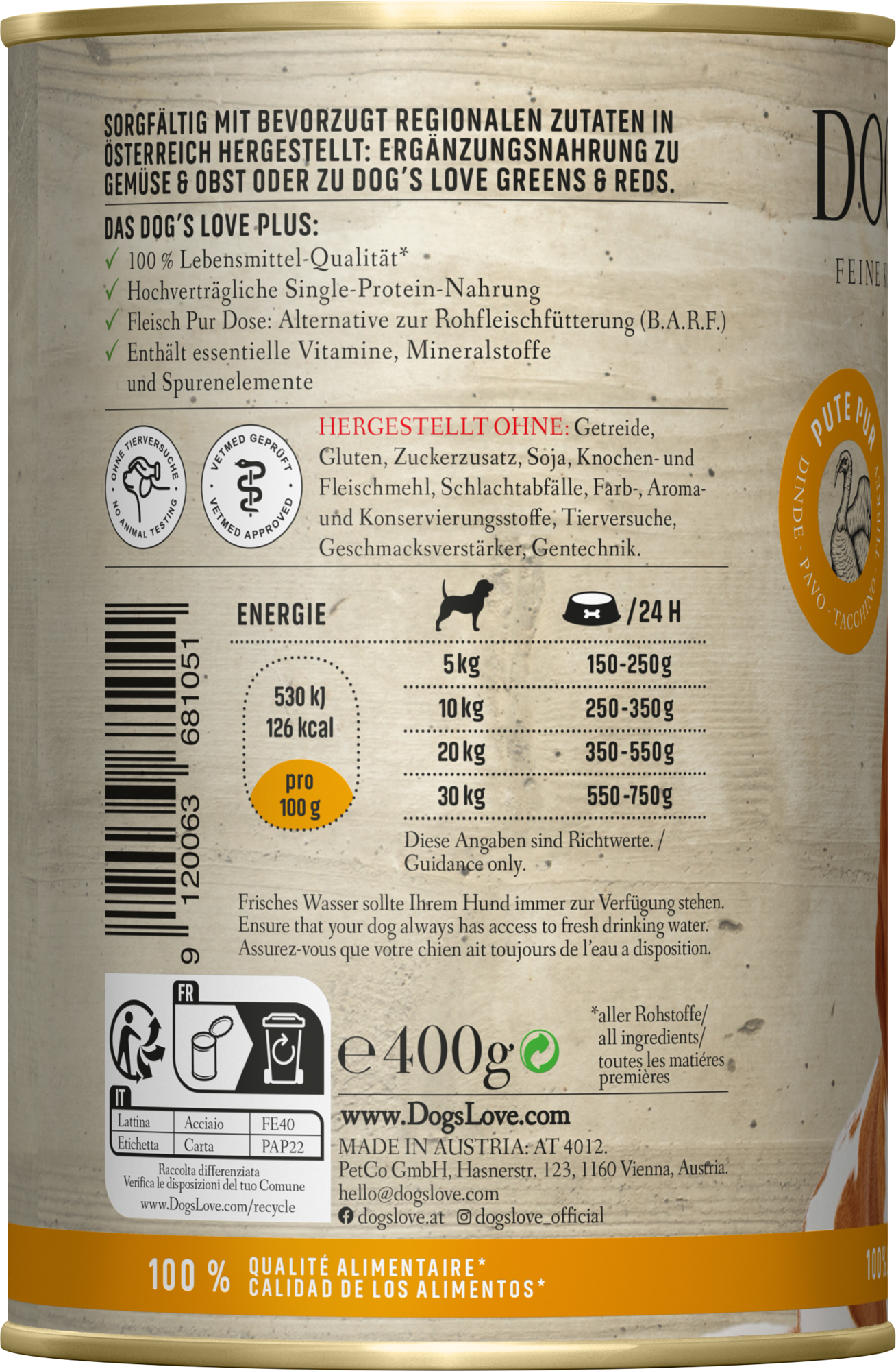 DOG'S LOVE B.A.R.F. Dinde, 400 g
