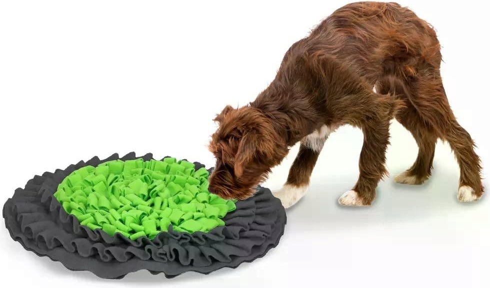 Avis aux amateurs de jeux olfactifs ! Ce tapis ludique permet de dissimuler la ration quotidienne de croquettes ou les friandises préférées de votre animal, qu’il devra ensuite retrouver grâce à son flair. Cette activité à la fois stimulante et adaptée à ses besoins aide également à éviter qu’il n’engloutisse sa nourriture trop rapidement. Particulièrement pratique : le cordon de serrage permet de réduire la taille du tapis ou de le transformer en panier fonctionnel.
