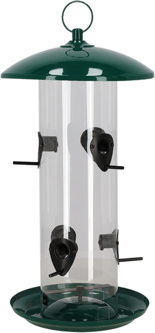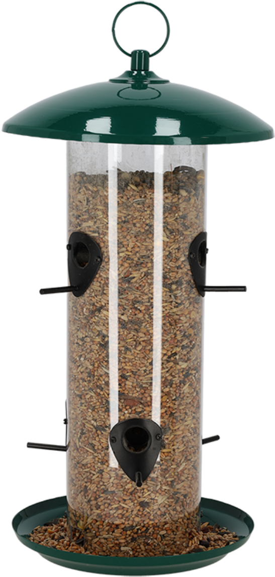 Ce distributeur de graines XXL saura faire le bonheur de tous les petits visiteurs à plumes de votre jardin, en quête de nourriture. Il est idéal pour contenir des mélanges de nourriture et grâce à ses différents perchoirs, plusieurs oiseaux peuvent venir se restaurer en même temps. Le distributeur possède un anneau de fixation pour que vous puissiez l'installer facilement à un endroit sûr et protégé.