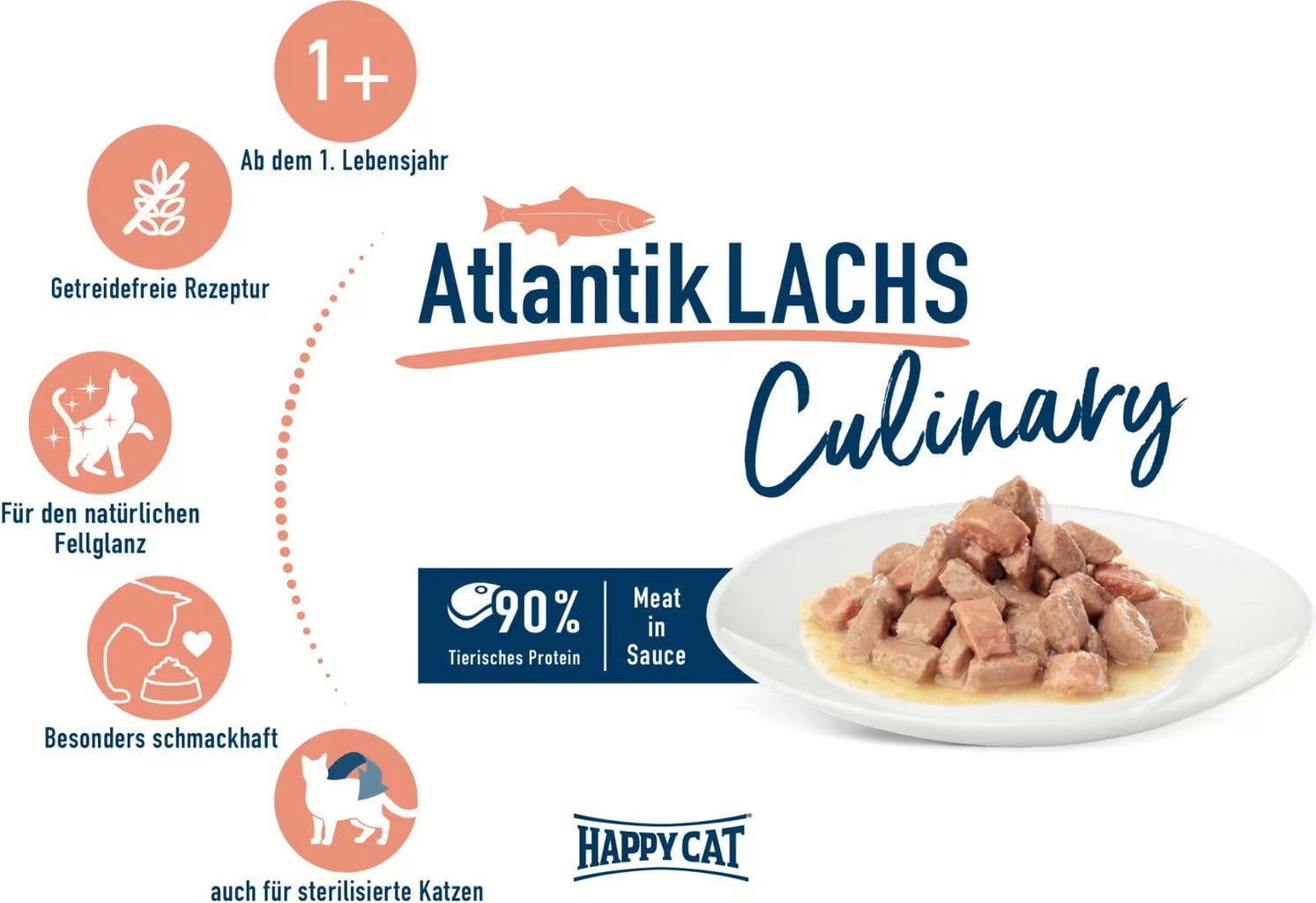 Happy Cat Alimentation humide Meat in Sauce Saumon en Sachet Fraîcheur, 85 g