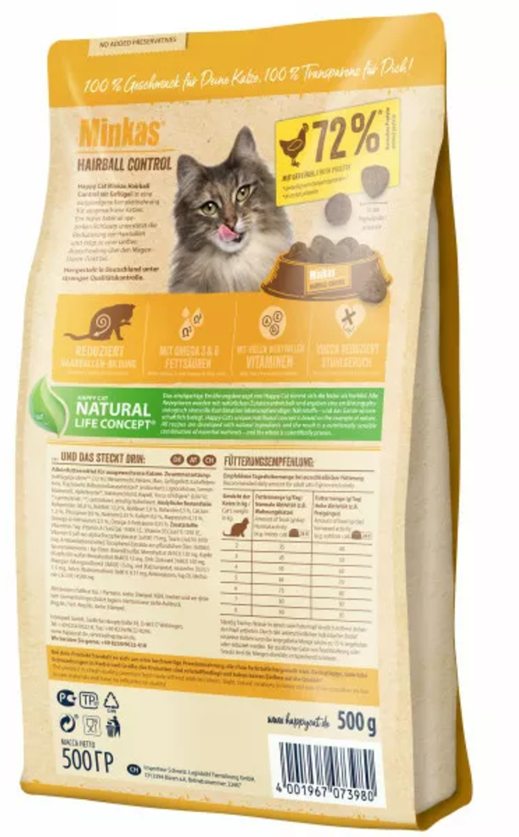 Happy Cat Croquettes Minkas Hairball Control Volaille, 500 g