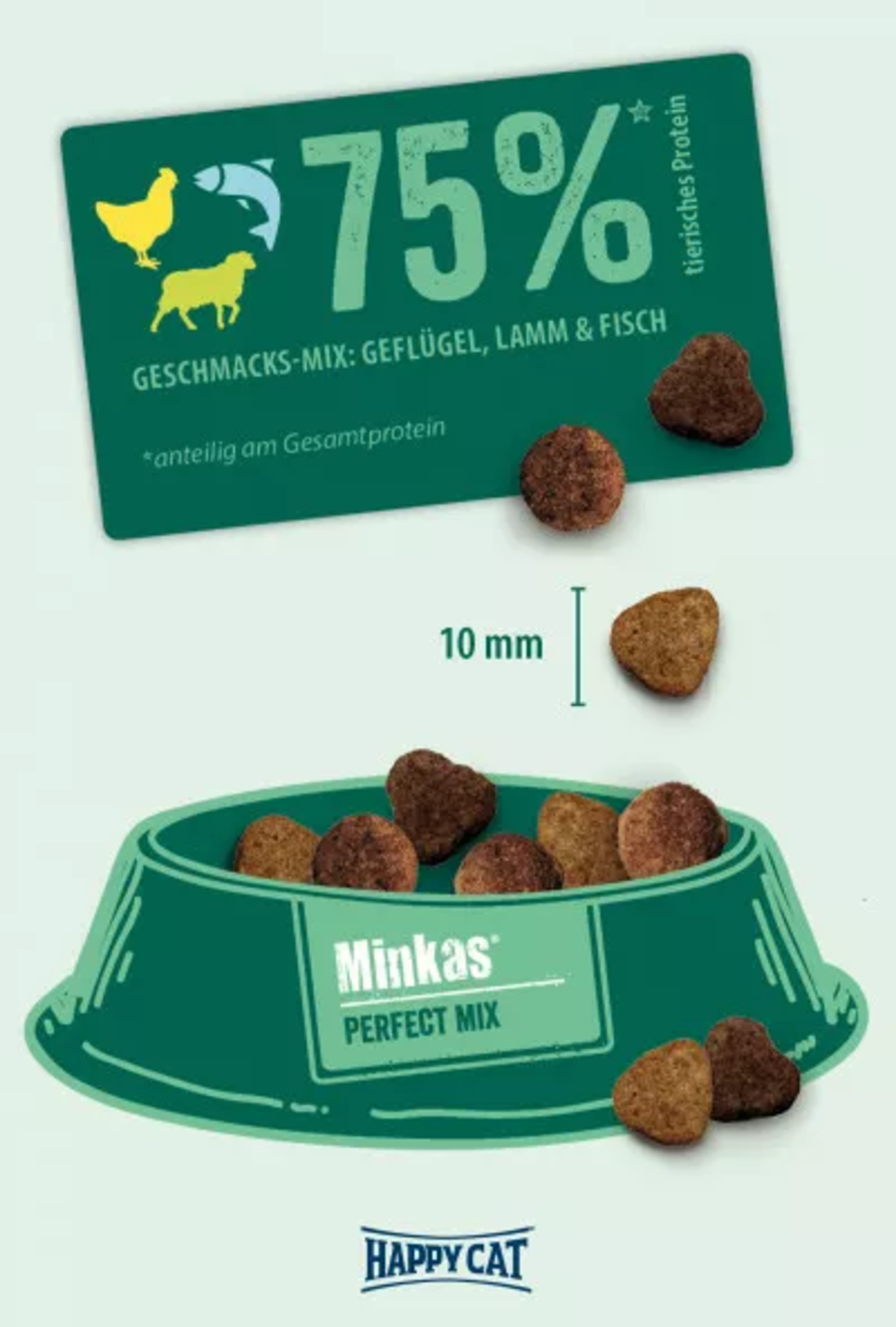 avis en français à propos du produit Happy Cat Croquettes Minkas Perfect Mix Volaille, Poisson et Agneau