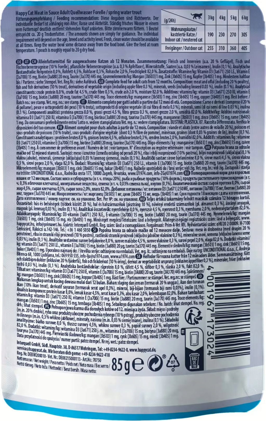 | Fabricant: | Interquell GmbH, Südliche Hauptstraße 38, 86517, Wehringen, Autriche, happycat.de/at |