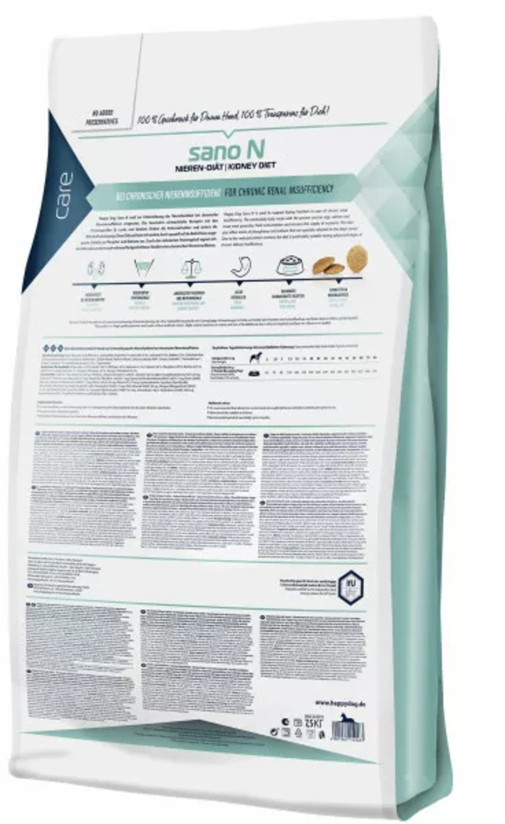 Les croquettes Sano N de Happy Dog sont spécialement indiquées pour les chiens souffrant d’insuffisance rénale chronique. La recette présente une teneur adaptée en protéines, phosphore et sodium, pouvant contribuer à soulager les reins affaiblis. Enrichi en vitamine E, un antioxydant qui aide à neutraliser les radicaux libres et à protéger activement les cellules, cet aliment sec contient également des ingrédients savoureux tels que l’œuf, le saumon et les cretons.