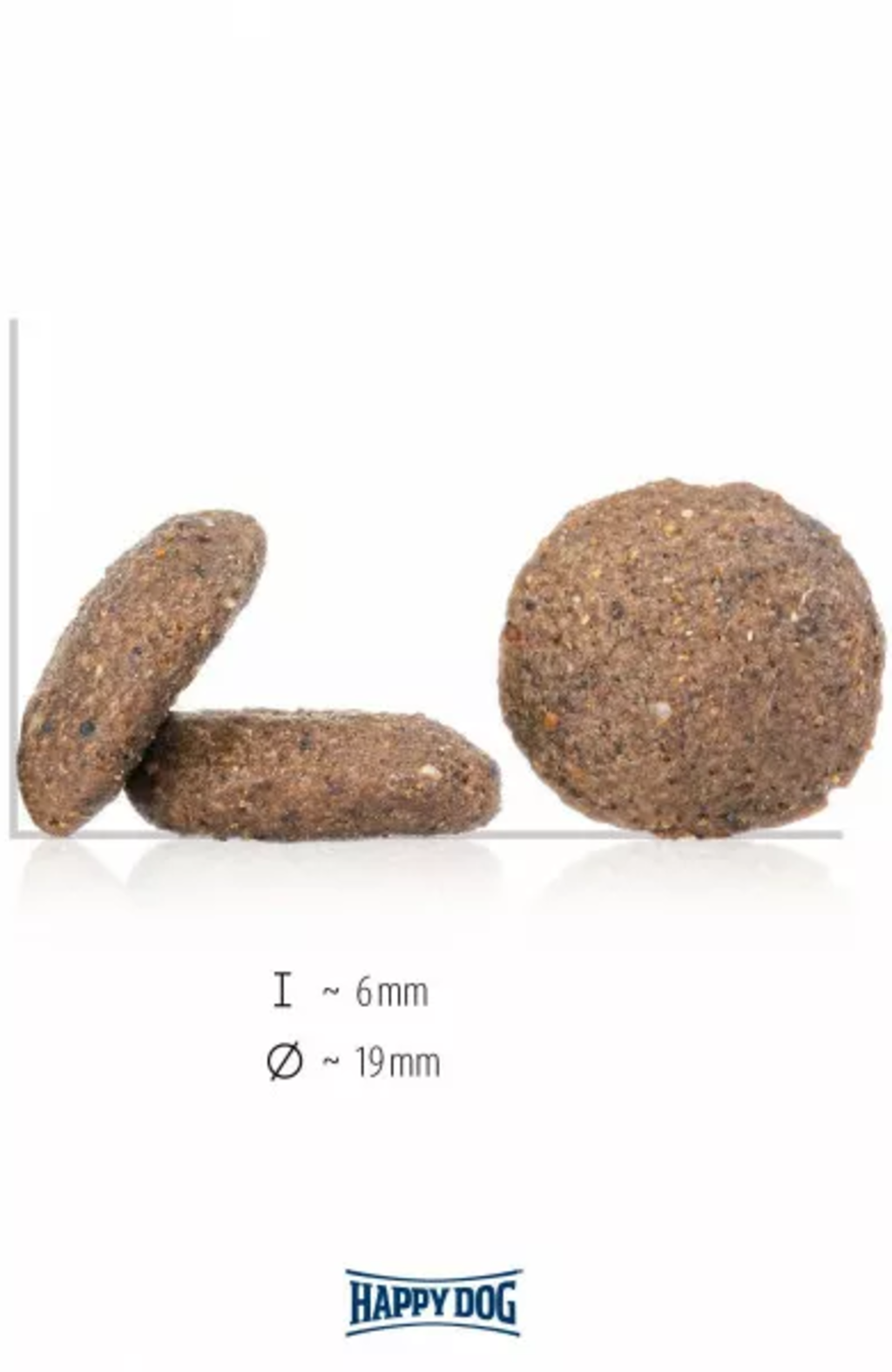 Les croquettes de 6 x 19 mm sont parfaitement adaptées à la dentition des chiens adultes de races moyennes et grandes.