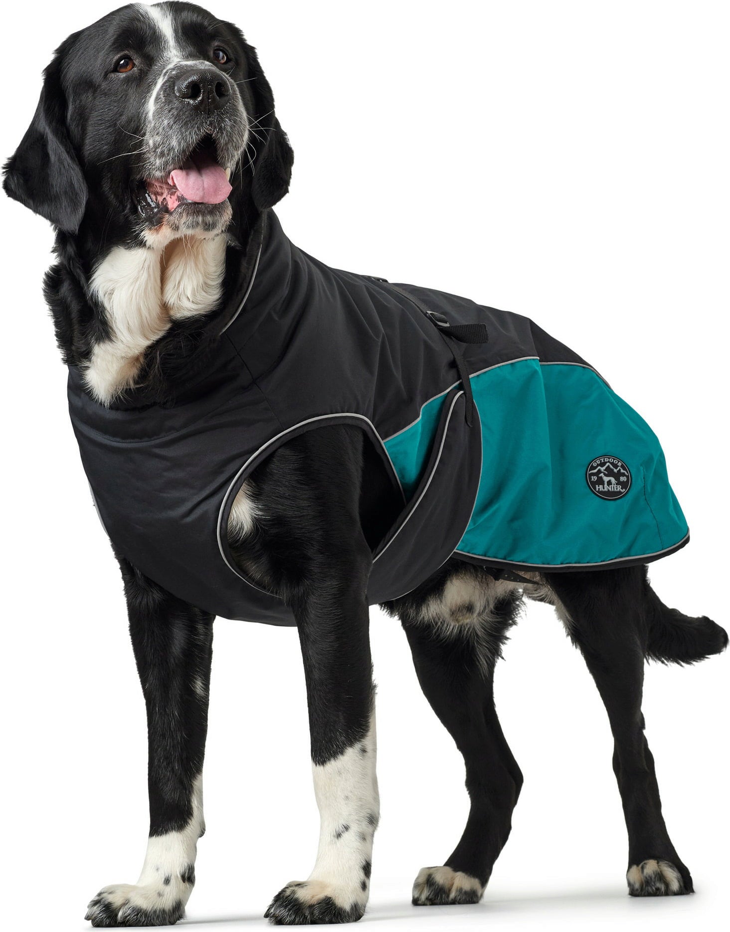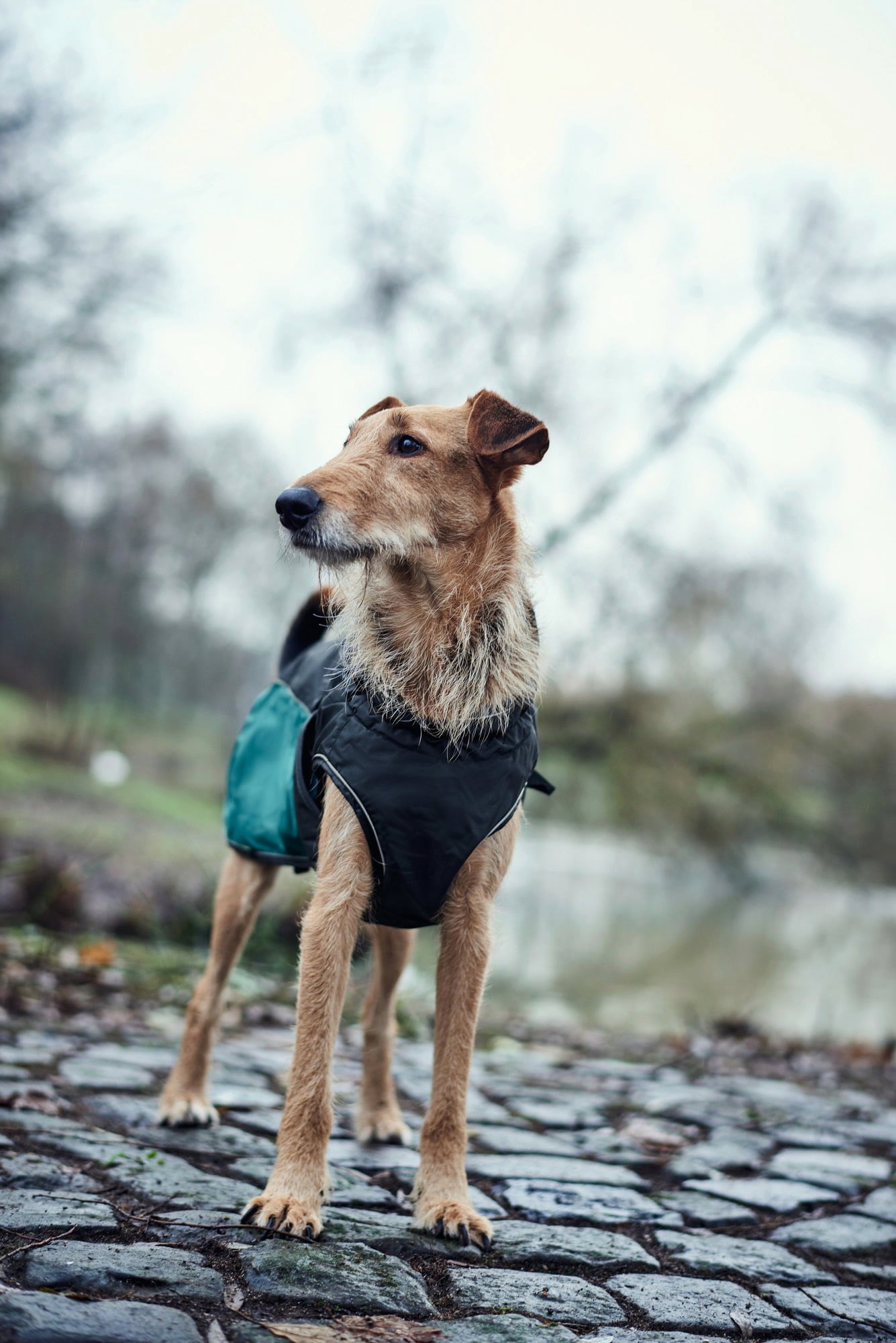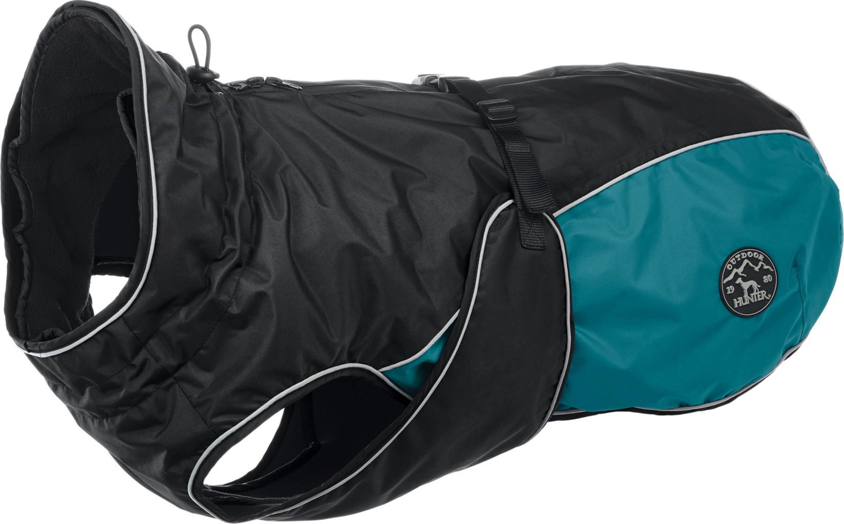 Des élastiques pour les pattes arrière optimisent le maintien du manteau, quelle que soit la morphologie du chien, et sans jamais limiter sa liberté de mouvement. Tous les passepoils sont en tissu réfléchissant afin d'assurer plus de sécurité lors de mauvaises conditions lumineuses.