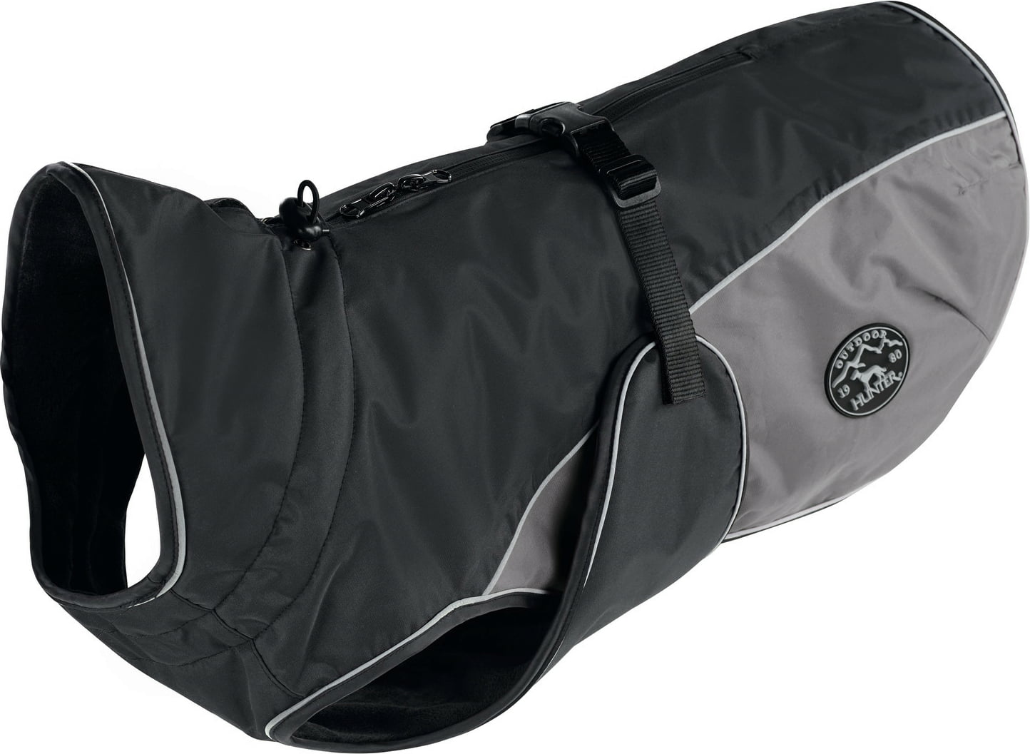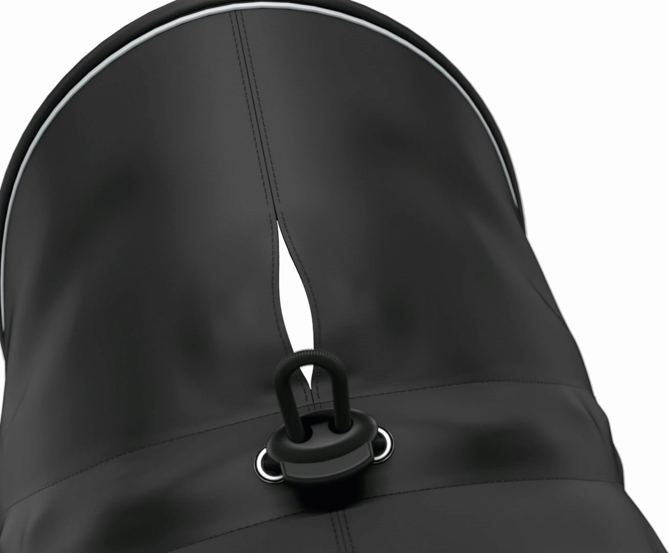 La largeur du col se règle à l'aide d'un élastique, et une ouverture pour l'anneau en D permet d'attacher et de détacher le chien sans effort. Pour être prêt à partir en un clin d'œil : une sangle ventrale réglable en continu avec une boucle d'attache rapide dans le dos facilite l'ajustement. Des élastiques pour les pattes arrière optimisent le maintien du vêtement, quelle que soit la morphologie de l'animal, sans perdre en liberté de mouvement.