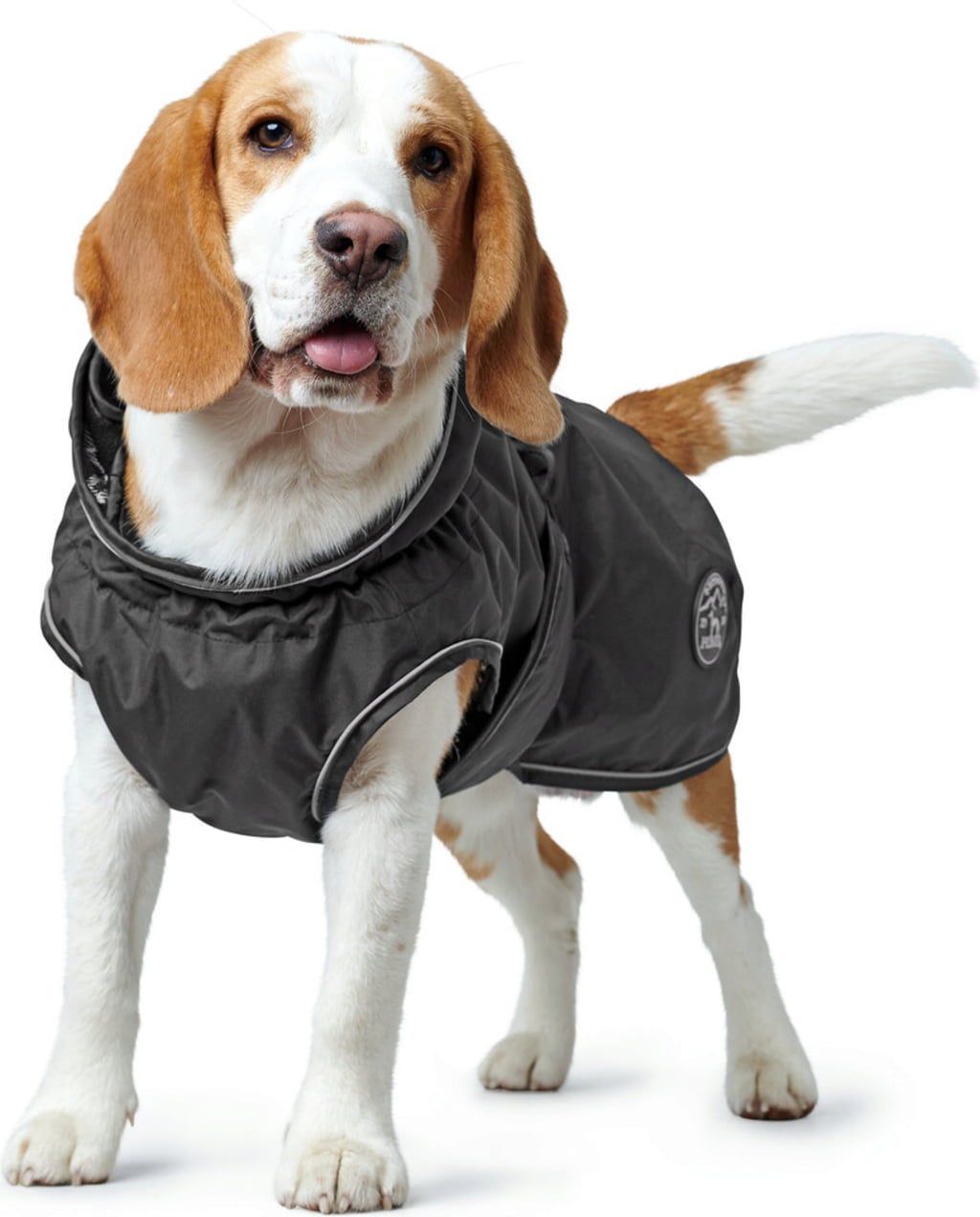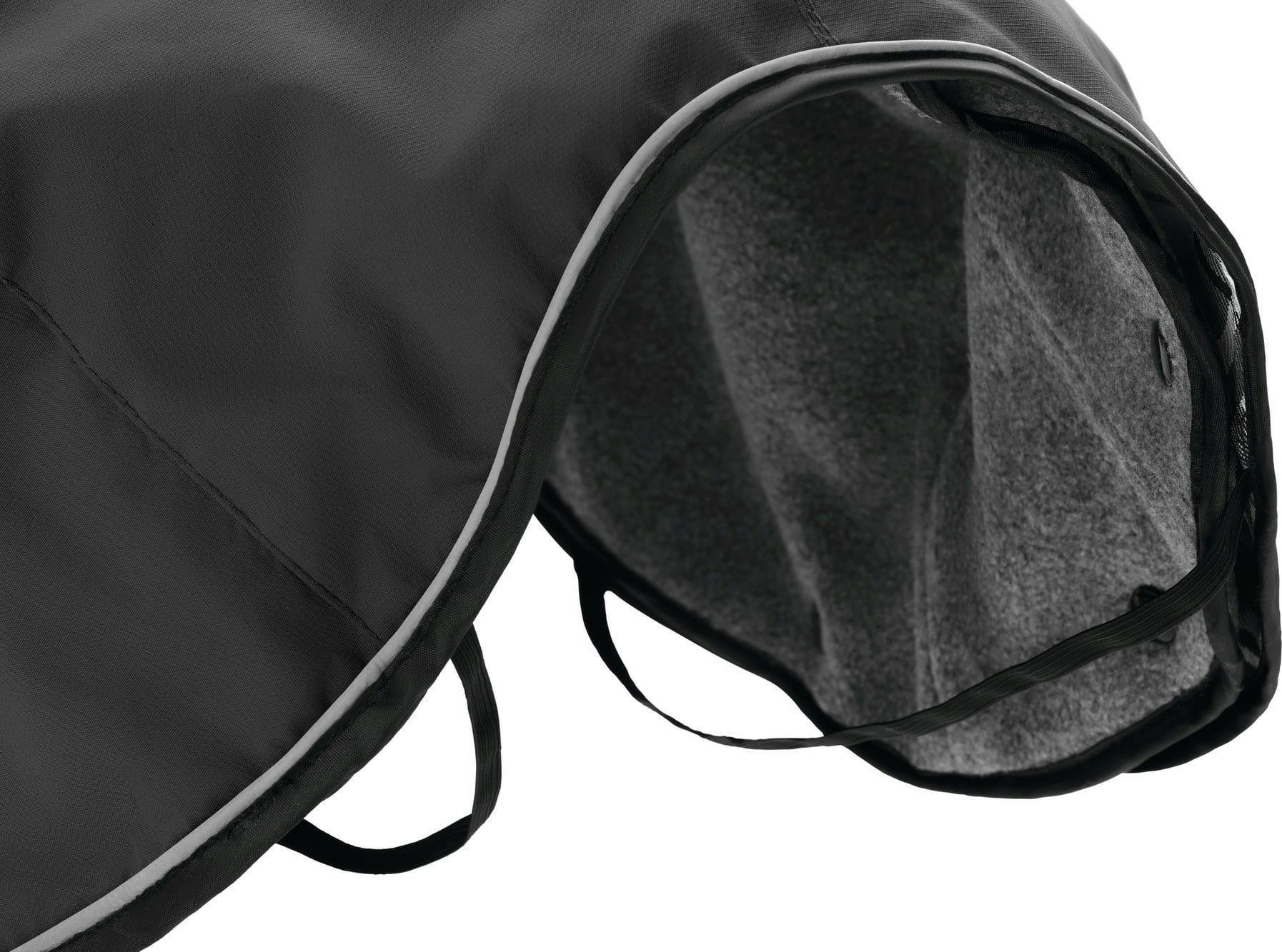 Des élastiques pour les pattes arrière optimisent le maintien du manteau, quelle que soit la morphologie du chien, et sans jamais limiter sa liberté de mouvement. Tous les passepoils sont en tissu réfléchissant afin d'assurer plus de sécurité lors de mauvaises conditions lumineuses.
