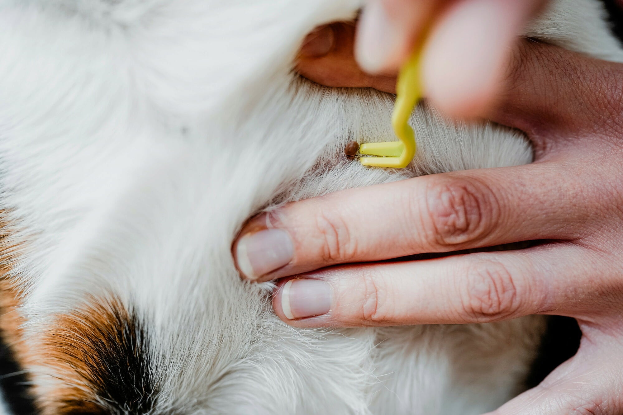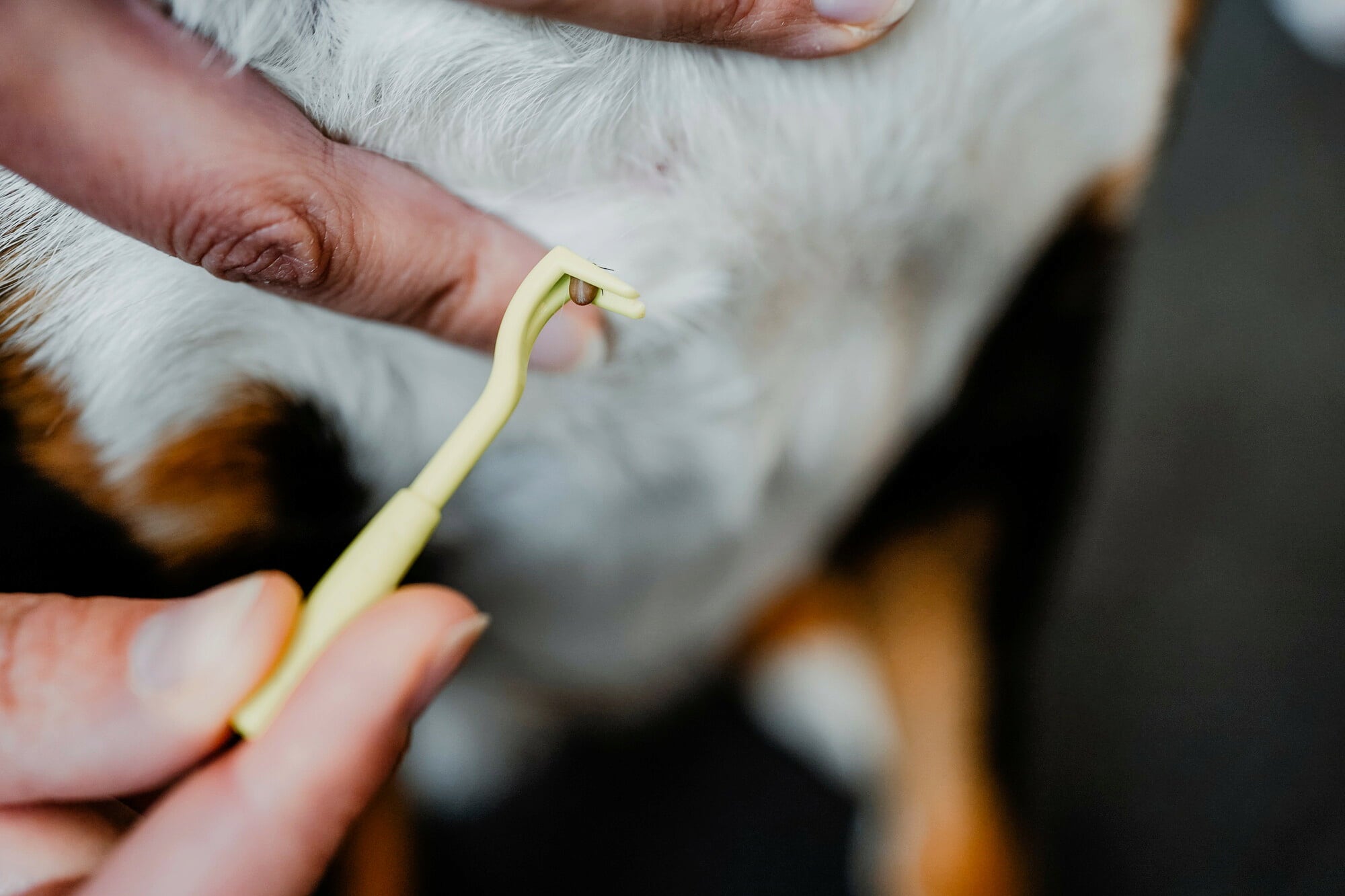 1. Choisissez un crochet en fonction de la taille de la tique et glissez-le délicatement sous le parasite.