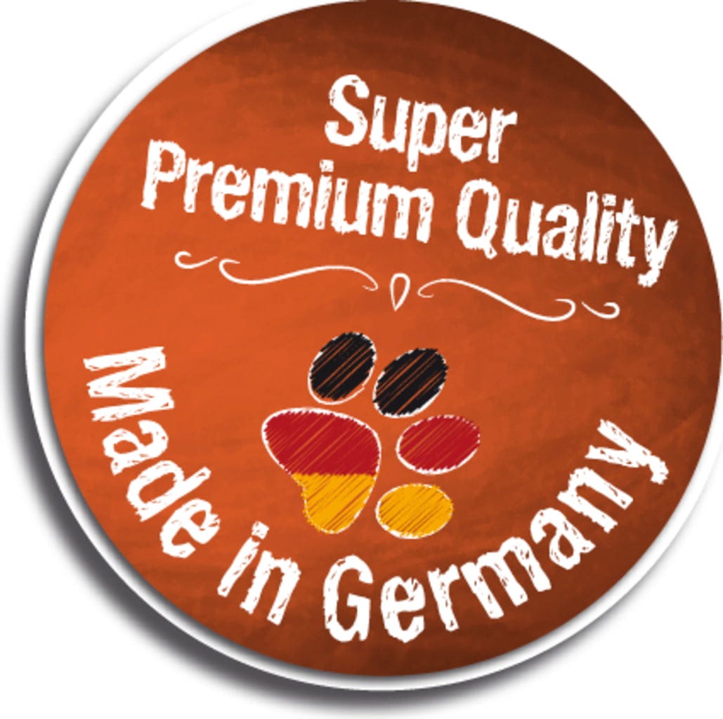 30 % viande de volaille fraîche, 18 % protéines de canard séchées, riz, 10 % protéines de volaille faibles en cendres et séchées, fécule de pomme de terre, graisse de volaille, foie de volaille hydrolysé, Roggen gemälzt, Oeuf séché, 2,5 % farine de poisson de mer, Zooplancton marin moulu (2,5 % krill), levure de bière inactivée et séchée, 1,5 % tourteau de pépins de raisin, 1,3 % graines de chia, farine de caroube séchée, Guarkernmehl, chlorure de sodium, Kaliumchlorid, inuline de chicorée