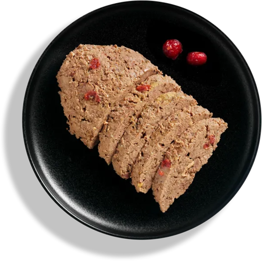 36,5 % Lammfleisch/-herz/-leber/-lunge/-niere, 30 % Geflügelfleisch/-herz/-leber, 28,3 % Fleischbrühe Lamm & Geflügel, 4 % canneberges, 0,5 % coquilles d'œufs séchées, 0,5 % Mineralstoffe, 0,2 % huile de saumon